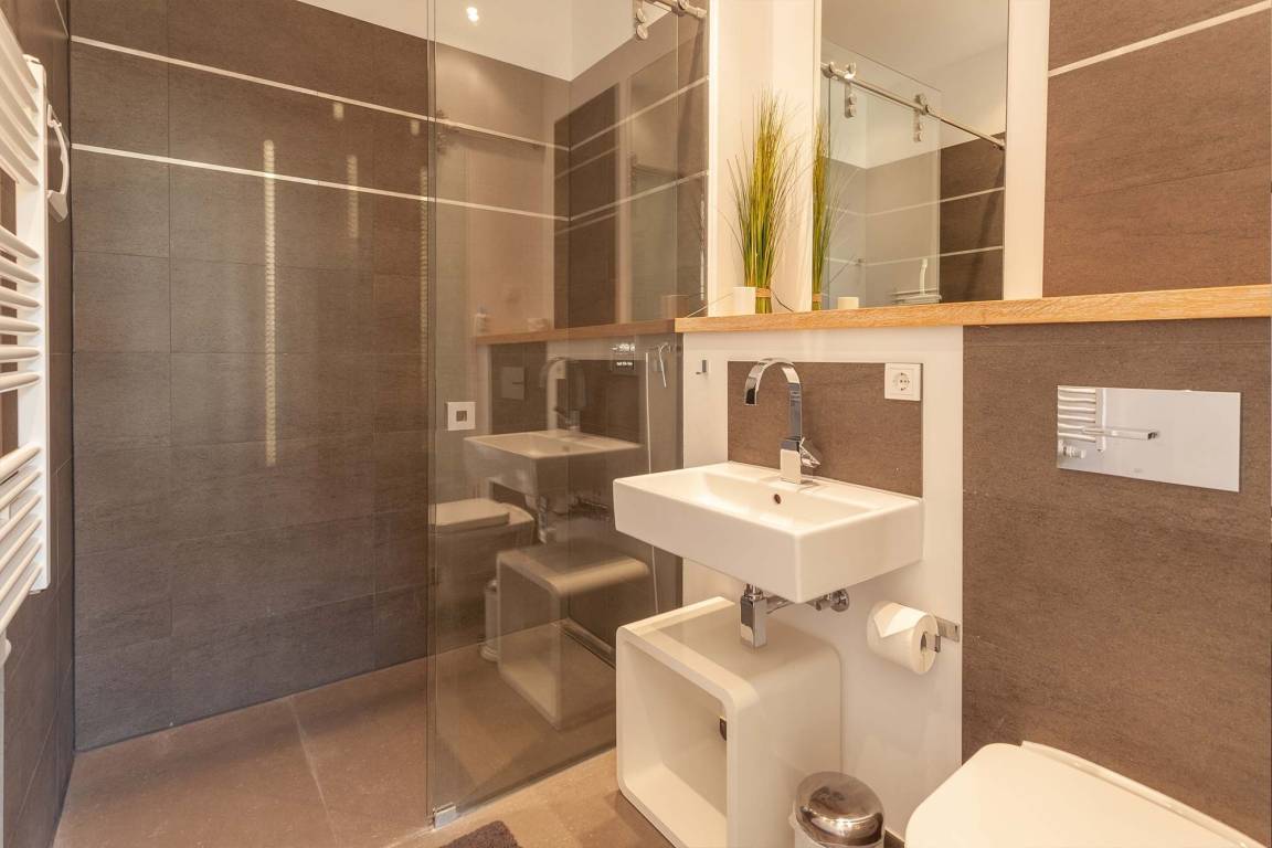 Dank der vielen bodentiefen Fenster, erwartet Sie eine rundum lichtdurchflutete Unterkunft, welche hohen Ansprüchen genügt. Die Wohnung selbst verfügt über einen hochwertigen Wohnbereich mit Fußbodenheizung und Kaminofen, gemütlichen Sofa, Essbereich und offener Küche. Die beiden Schlafzimmer verfügen jeweils über ein eigenes Ensuite-Bad. Zusätzlich dazu, gibt es noch ein weiteres Gäste-WC.