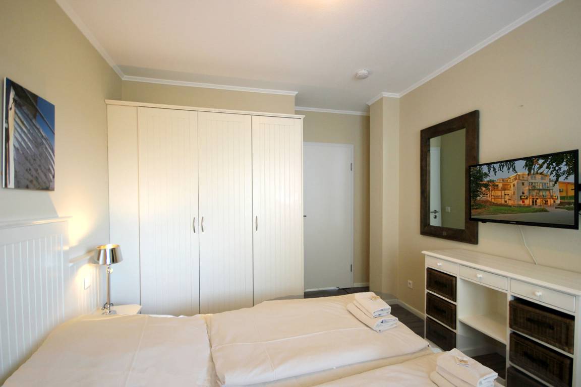 Ihre 2-Zimmer Ferienwohnung 65RB10 Seepferdchen befindet sich im 1. Obergeschoss und ist ca. 49 qm groß. Die Nichtraucherwohnung verfügt über zwei Balkone und ist für bis zu 4 Personen gut geeignet. Neben dem gemütlichen Wohnbereich mit Zugang zum Balkon mit Blick auf den Selliner See, gehört eine Sitzecke mit Schlaffunktion, ein Essbereich, Flachbild TV sowie WLAN. Im Schlafzimmer erwartet Sie ein Doppelbett, ein zusätzlicher TV, ein Kleiderschrank sowie ein weiterer Balkon. Zudem können Sie eine voll ausgestattete und im Wohnbereich integrierte Küchenzeile mit Geschirrspüler, Backofen, Wasserkocher, Toaster, Kaffeemaschine sowie umfangreiches Küchengeschirr nutzen. Das moderne Badezimmer erwartet Sie mit Waschtisch, WC und Dusche. Einen Parkplatz sowie eine Fahrradunterstellmöglichkeit befinden sich direkt am Objekt.