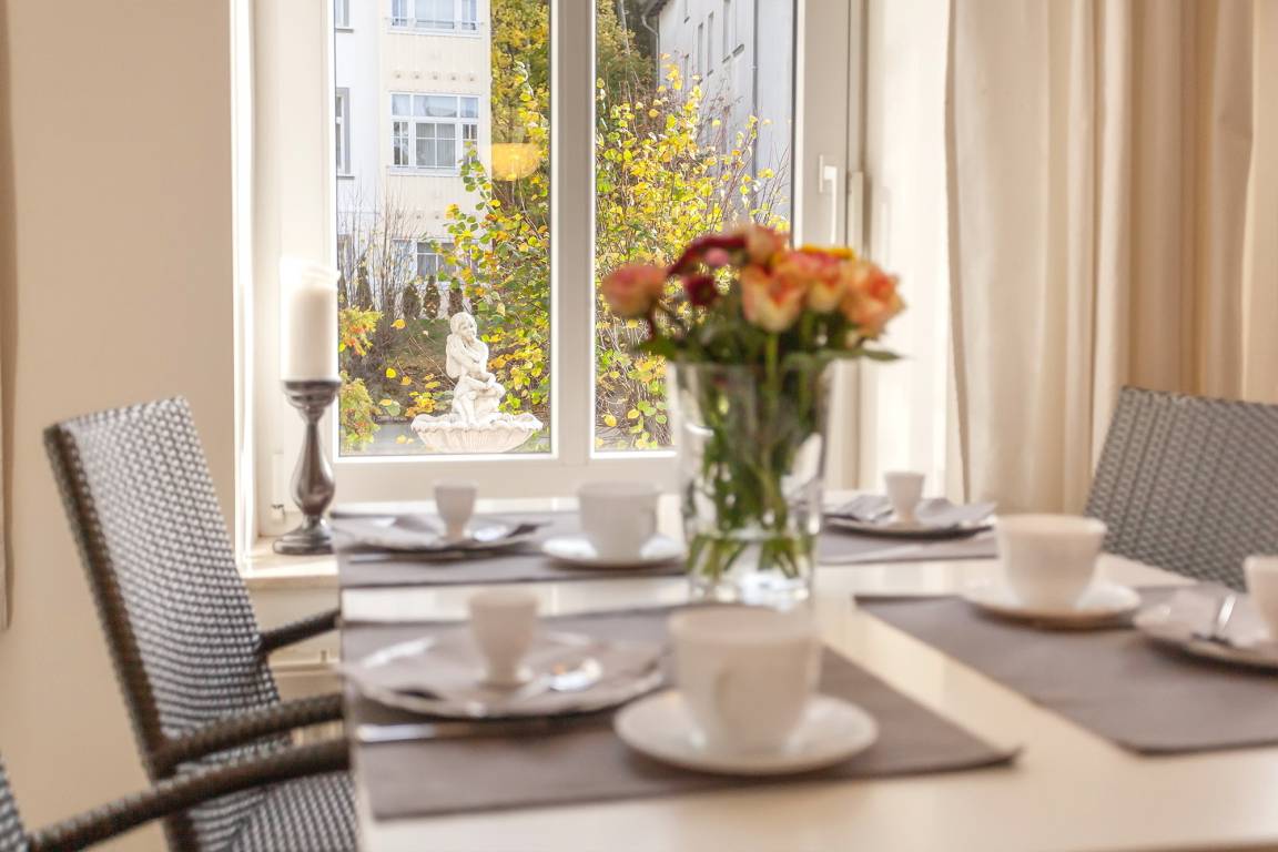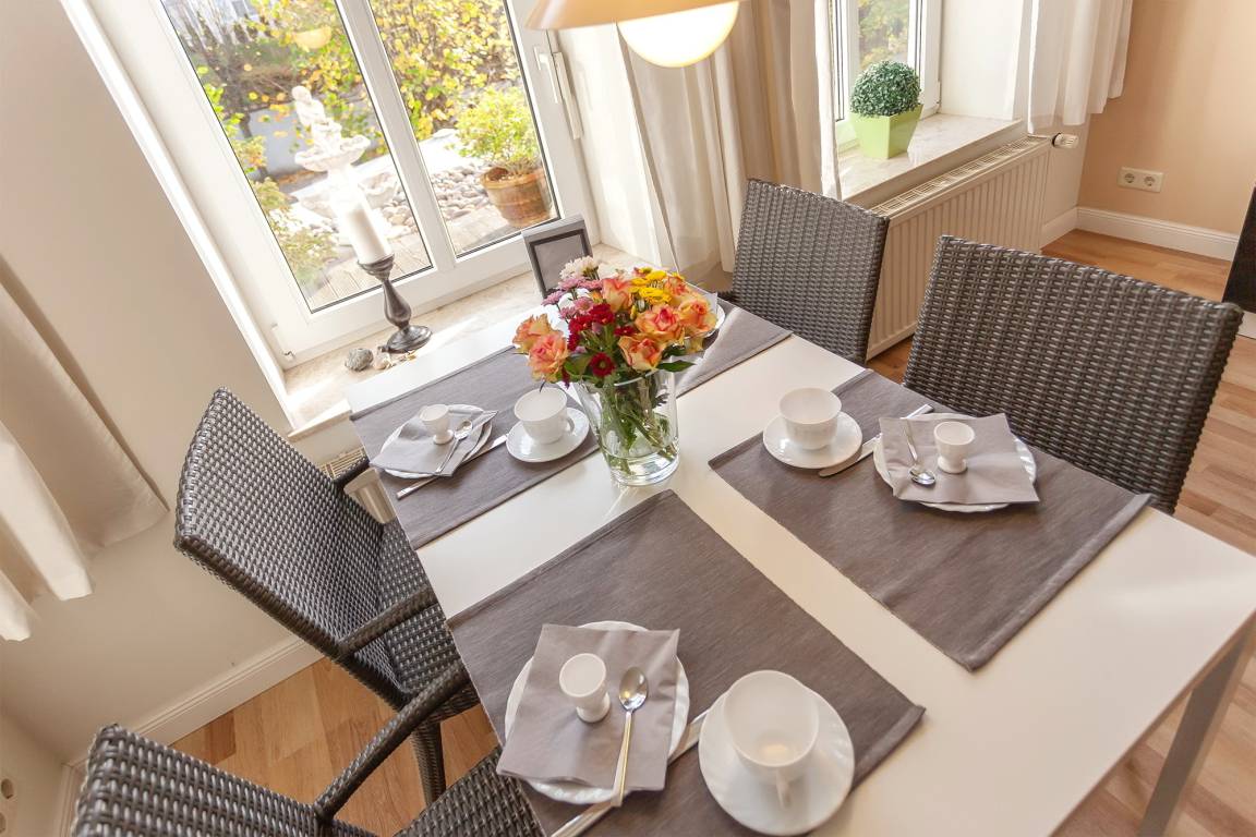 Stolze 70 Quadratmeter groß, begrüßt Sie die Ferienwohnung Nr. 2 in der Villa Granitz. Mit ihren drei Zimmern bietet Sie Platz für bis zu vier Personen. Dabei begeistern neben der Großzügigkeit der Räume vor allem das wohltuende Farbkonzept und die sehr stilvolle Einrichtung.