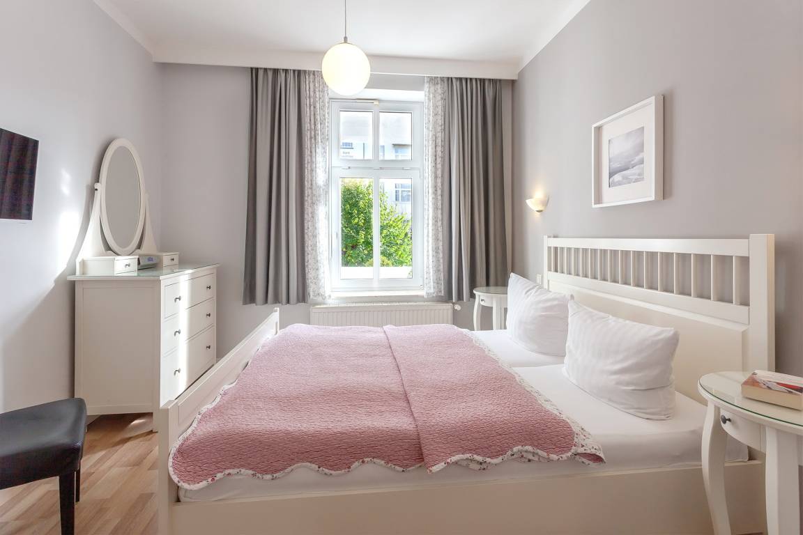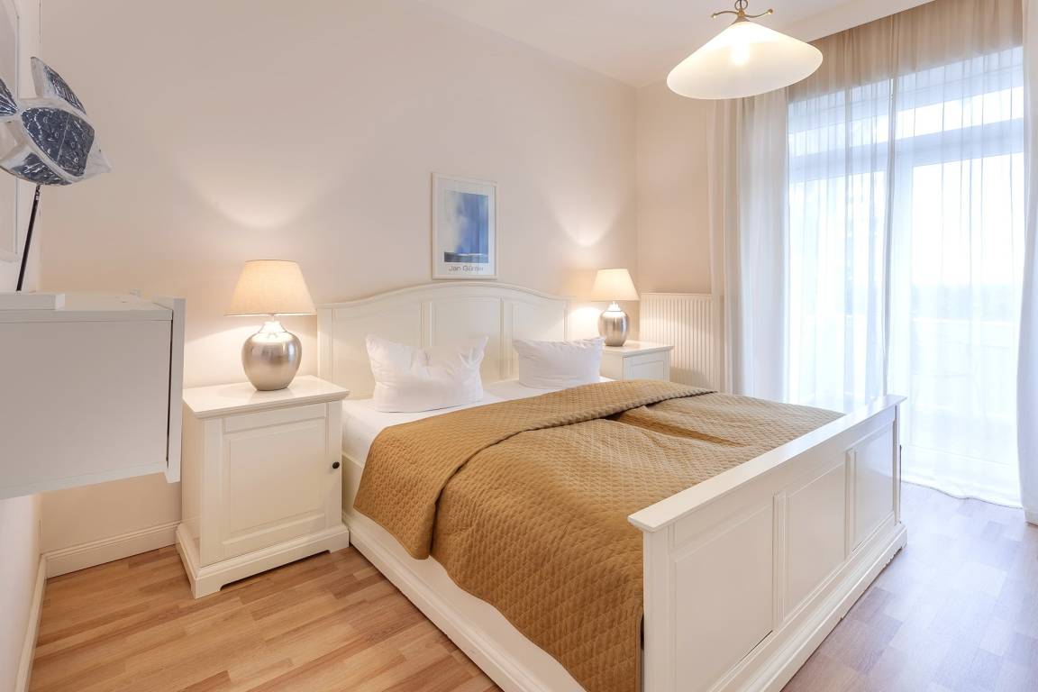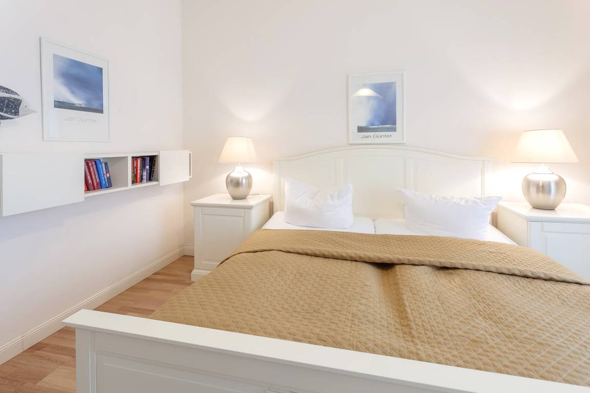 Im Badezimmer finden Sie neben einer ebenerdigen Dusche auch eine Sauna, dazu einen Doppelwaschtisch und WC/Bidet. Und wenn Sie sich dann abends nach einem erlebnisreichen Tag in die kuscheligen Doppelbetten der beiden Schlafzimmer legen, wünschen wir Ihnen schon jetzt süße Träume. Also, bis bald - Ihr perfektes Urlaubsdomizil in Sellins Flaniermeile erwartet Sie!
