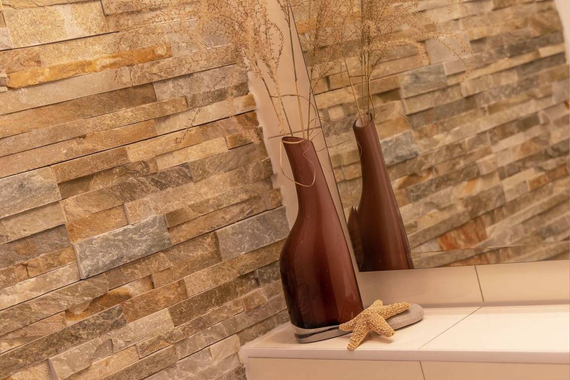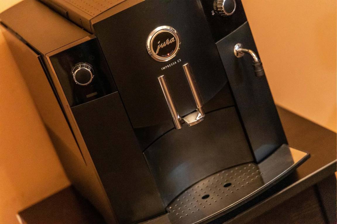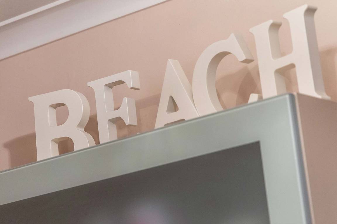 Die Einrichtung im offenen Wohn- und Küchenbereich überzeugt durch extravagante Möbel. Zum Verweilen lädt das Sofa ein, welches sich bei Bedarf in ein 140x200 cm großes Bett verwandeln lässt. Ein Flachbild-TV sorgt in den Abendstunden für Unterhaltung.