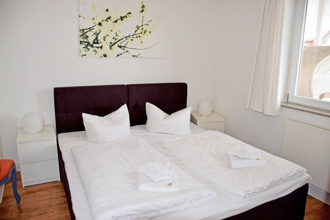 Die Ferienwohnung "Villa Sonneck, App. 17" bietet auf 74 m² Platz für maximal 6 Personen und befindet sich in der zweiten Etage des Hauses "Villa Sonneck". Sie verfügt über ein Balkon, 2 Schlafzimmer und 1 Badezimmer. Zur Ausstattung gehören ein Flachbild-TV, eine Fahrradunterstellmöglichkeit sowie ein Parkplatz. Außerdem steht den Gästen WLAN/Internet zur Verfügung. In der Küche finden Sie eine Kaffeemaschine (Filter), eine Mikrowelle, einen Geschirrspüler und eine Küchenzeile vor. Das Haus verfügt über eine Waschmaschine und einen Trockner. Das Rauchen ist in der Wohnung nicht gestattet, jedoch ist Ihr Hund herzlich willkommen. Eine Gemeinschaftssauna steht Ihnen ebenfalls zur Verfügung. Der Strand befindet sich in ca. 150 m Entfernung von der Ferienwohnung.