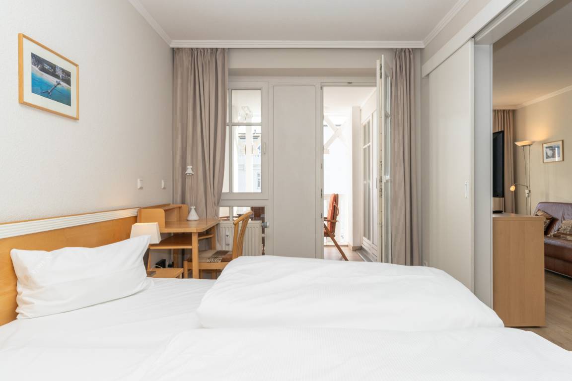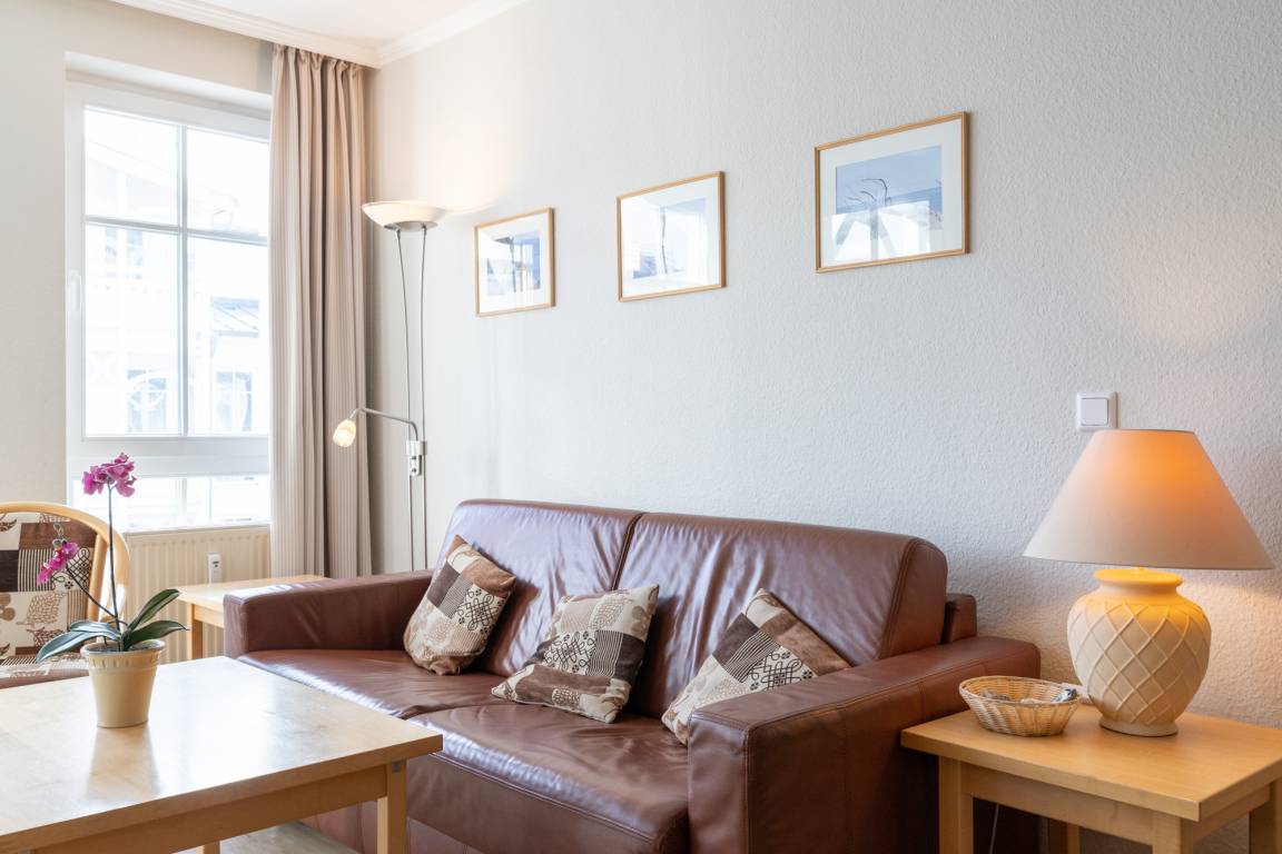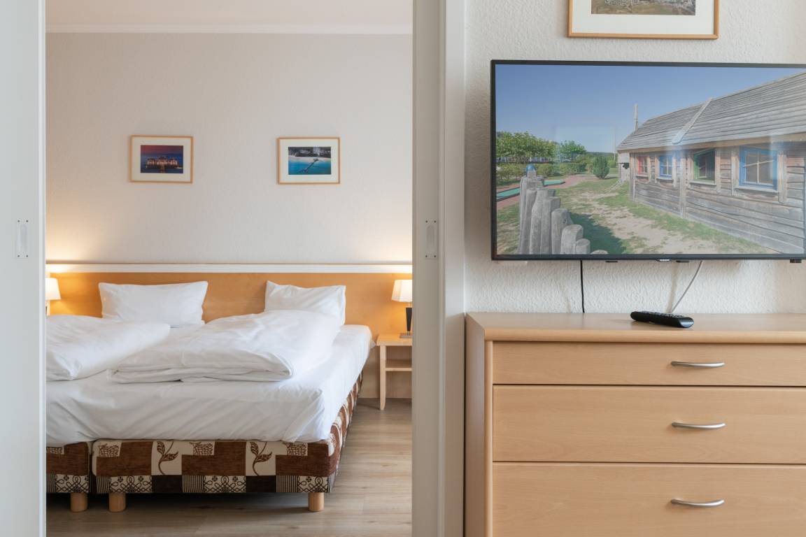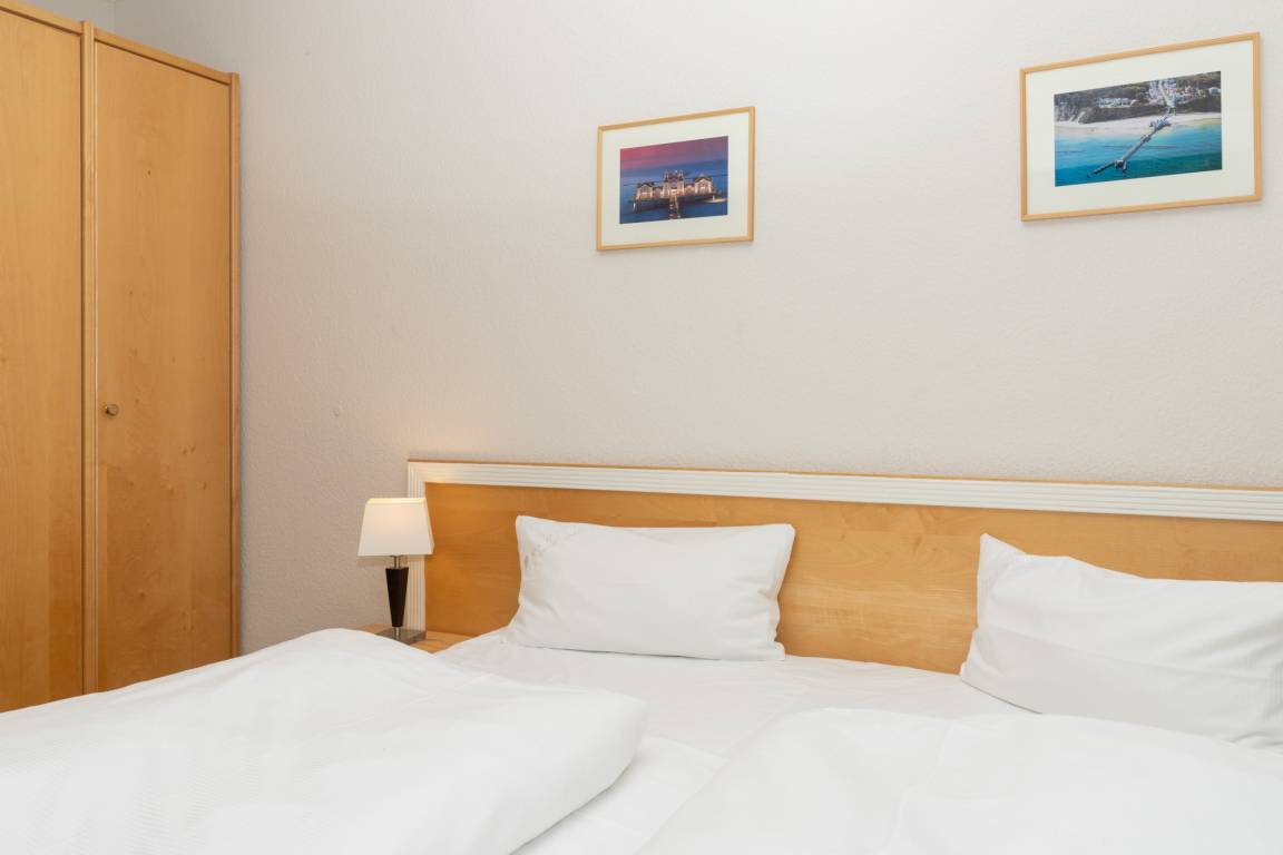 Der WLAN-Anschluss sowie der TV mit Sky-Sender sorgen für Unterhaltung. Ein Tiefgaragenstellplatz steht ebenfalls zur Verfügung. Für einen stressfreien Start in den Tag können Sie den Brötchenservice nutzen. Einkaufsmöglichkeiten befinden sich nur 50 m entfernt, der Strand ist ca. 900 m entfernt. Auch ein Bäcker, Minigolf, ein Restaurant sowie die AHOI! Bade- [&] Erlebniswelt sind in unmittelbarer Nähe. Die Seebrücke und der Schiffsanleger sind ca. 900 m bzw. 500 m entfernt. Die Bushaltestelle ist etwa 100 m entfernt.