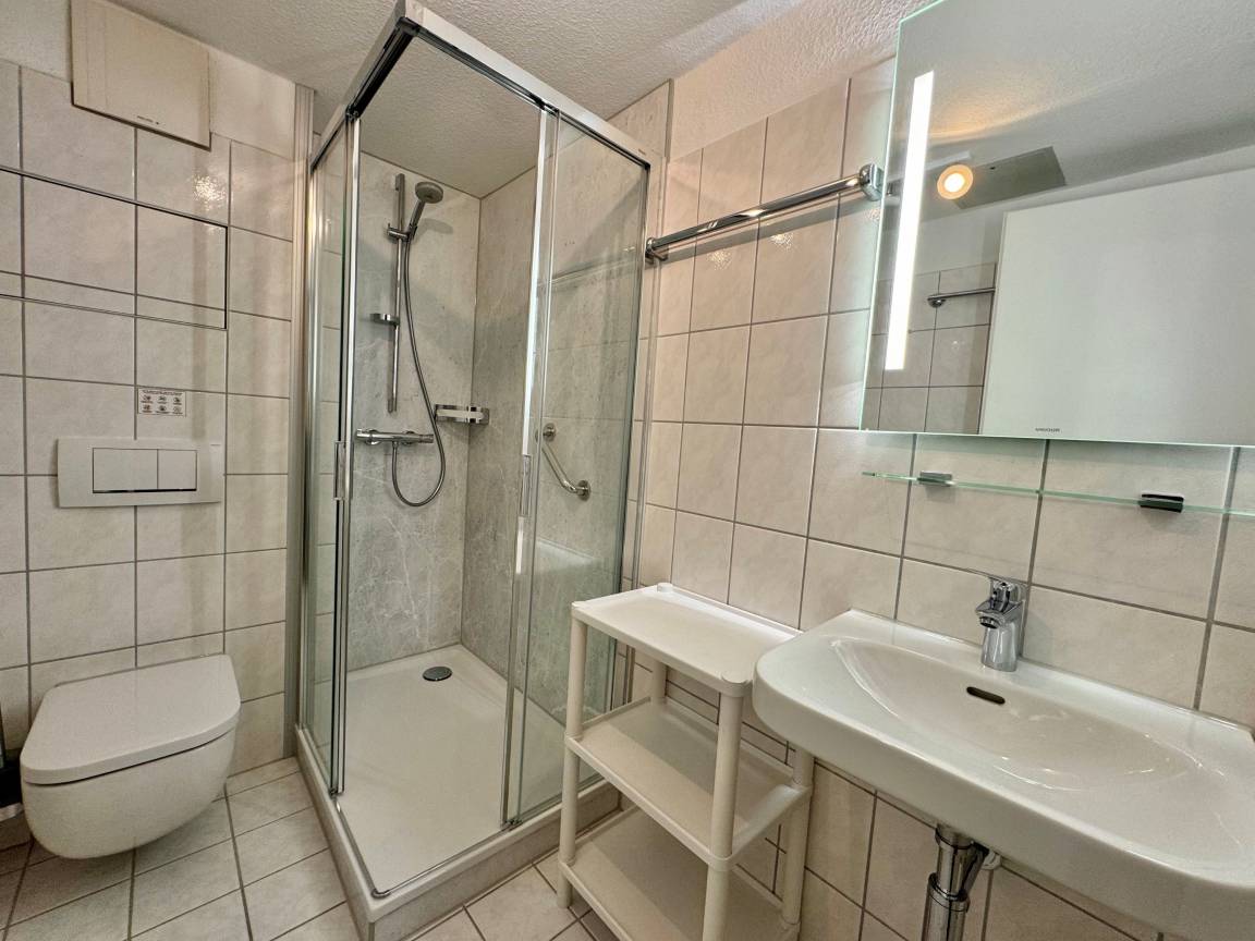 Sie verfügt über ein Schlafzimmer und ein Badezimmer. Die Ausstattung umfasst einen Flachbildfernseher, eine Kaffeemaschine (Filter), eine Mikrowelle sowie Bettwäsche, die bereits im Preis inkludiert ist. Vom Balkon aus genießen Sie einen schönen Ausblick auf die Umgebung. Die offene Wohnküche bietet ausreichend Platz zum Kochen und Essen. Im Fahrradkeller können Sie Ihre Fahrräder sicher abstellen.