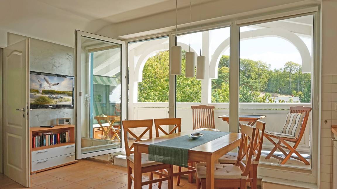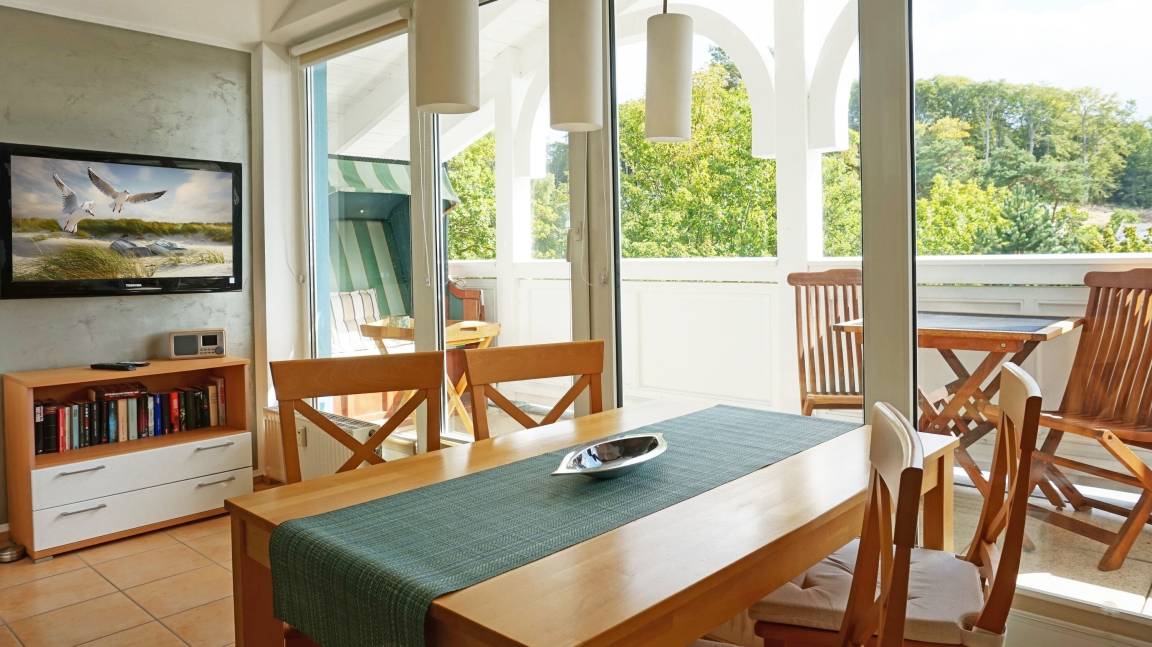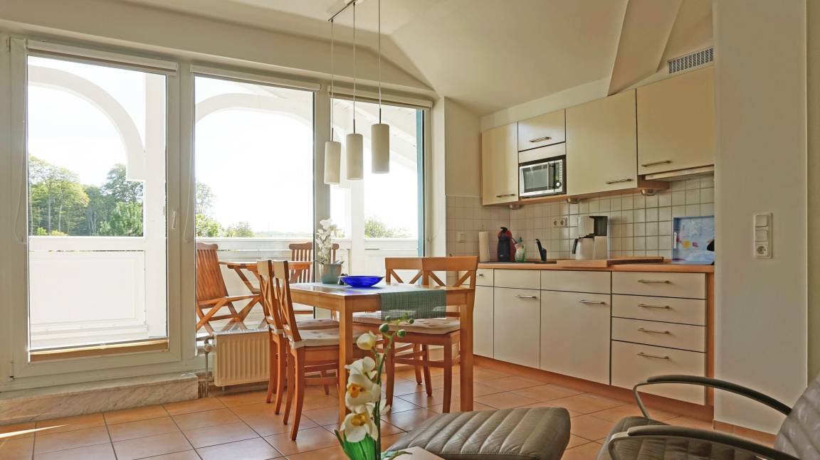 Auf 52 m² können hier bis zu 3 Erwachsene eine angenehme Zeit auf der Insel Rügen verbringen. Auch der Name ist hier Programm: lassen Sie sich von der schönen Rügener Morgensonne auf dem großen Balkon verzaubern und genießen Sie die Ostseeluft!