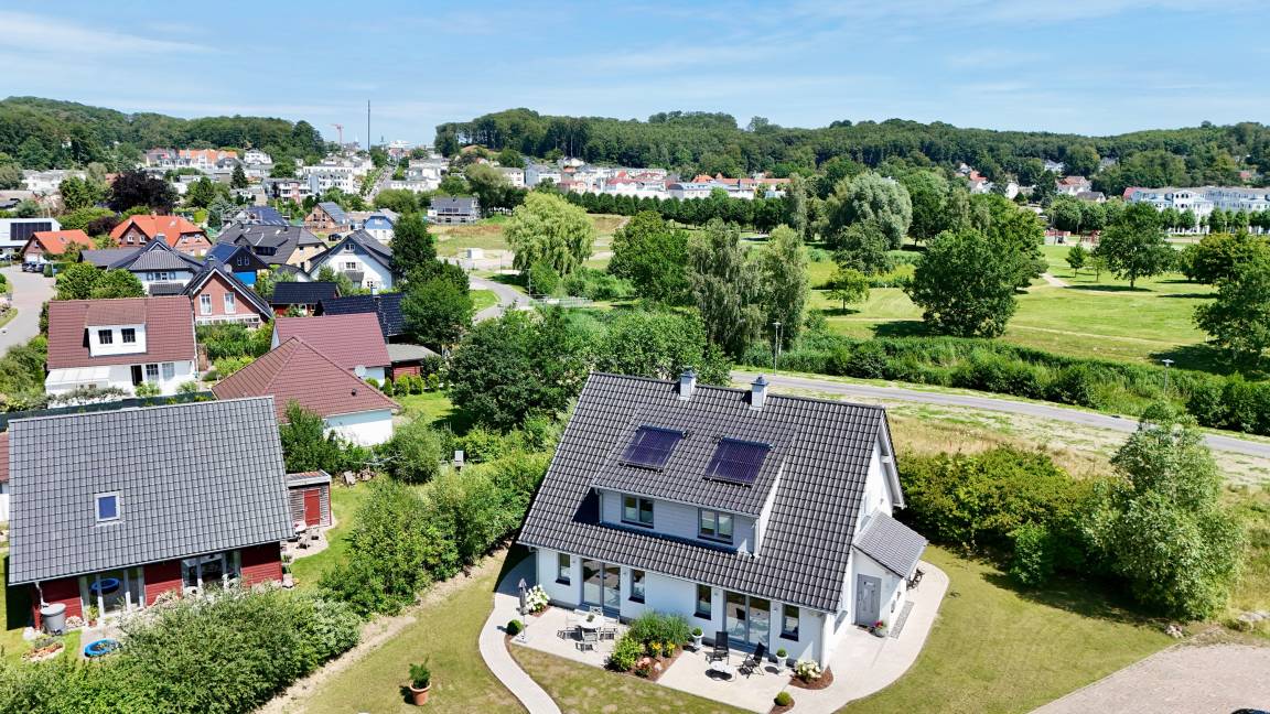 Herzlich Willkommen im 2022 neu erbauten "Seeherz" Sellin. Dieses tolle Domizil wurde unweit des Selliner See's und dessen ebenfalls neu erbauten Hafen Sellin errichtet. Das liebevoll eingerichtete Haus verwöhnt seine Gäste auf gut 135 qm Wohnfläche. Im Erdgeschoss finden Sie sowohl den großzügigen und offenen Wohnbereich, ein Badezimmer, eine hochwertig eingerichtete Einbauküche und 2 Sonnenterrassen. Im Obergeschoss befinden sich 2 Schlafzimmer und ein tolles Badezimmer mit privater Sauna und Blick in den "Seepark Sellin". In 1 Minute zu Fuß am Selliner See angekommen, lassen sich hier sowohl Ausflüge per Schiff starten, leckere Fischbrötchen essen oder auch einfach nur dem bunten Treiben des Hafens zusehen. Ebenso erreichen Sie in wenigen Minuten das Zentrum Sellins. Die Prachtstraße des Ortes - die "Wilhelmstraße"- bringt Sie unmittelbar zu einem der Wahrzeichen unserer tollen Insel, der Seebrücke Sellin. Die tolle Ausstattung des Hauses, in Verbindung mit der wundervollen Lage, lassen dieses Haus zu einem tollen Ausgangspunkt für Ihren nächsten Urlaub werden.