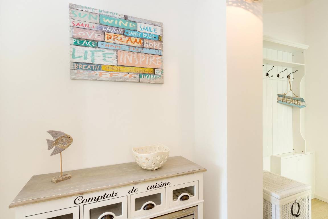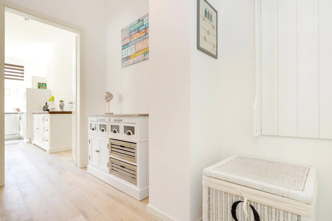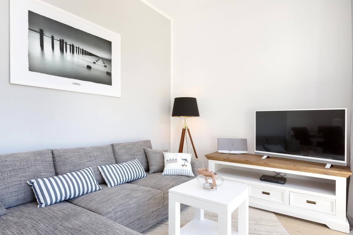Sich im Urlaub wie zu Hause fühlen - dieses angenehme Gefühl stellt sich spontan ein, wenn Sie die Schwelle zur Ferienwohnung Heimkehr überschreiten. Ihr gut 58 m² großes Urlaubsdomizil in der erst 2015 eröffneten Villa Wiederkehr im Ostseebad Sellin empfängt Sie mit hellen, freundlichen Farben, einer hochwertigen Möblierung, moderner technischer Ausstattung und geschmackvollen Dekorationen im maritimen Stil.