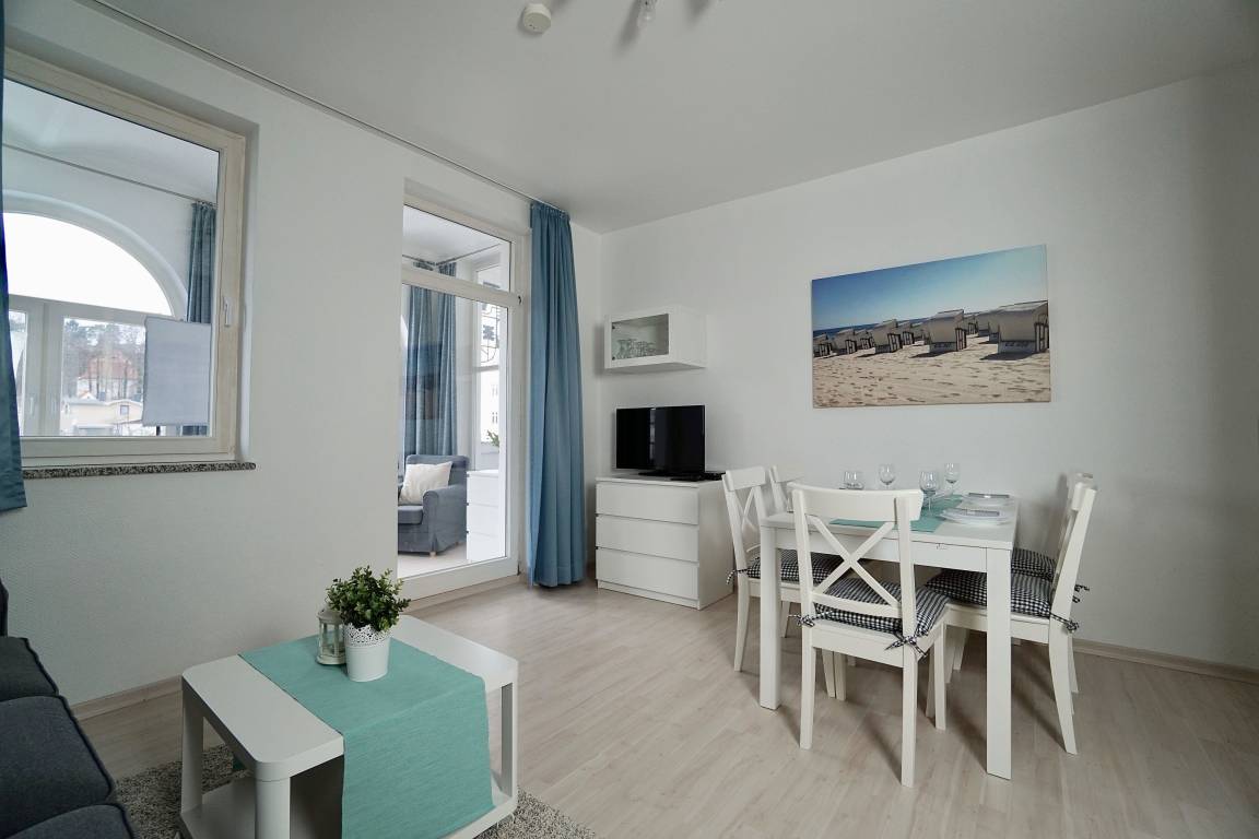 Herzlich Willkommen in diesem komfortablen Ferienappartement Jasmund. Das direkt in der historischen Wilhelmstraße gelegen nur 300 Meter vom langen Sandstrand und der schönen Seebrücke entfernt ist.