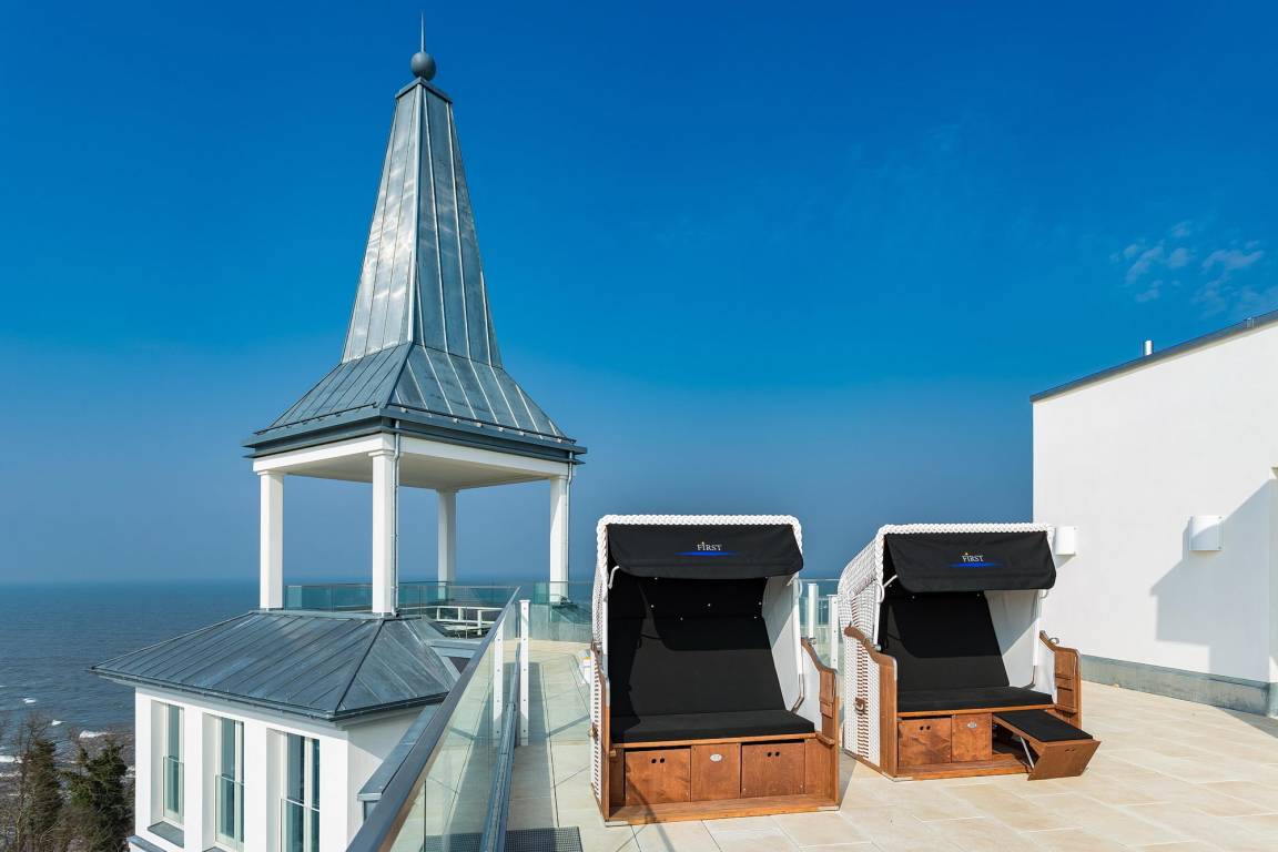 Die Ferienwohnung befindet sich in der ersten Reihe. Hier erfahren Sie den puren Luxus, sei es von der Dachterrasse, mit einem gigantischen Meerblick auf die Selliner Seebrücke aus dem beheizbaren Pool oder den beiden Saunen.