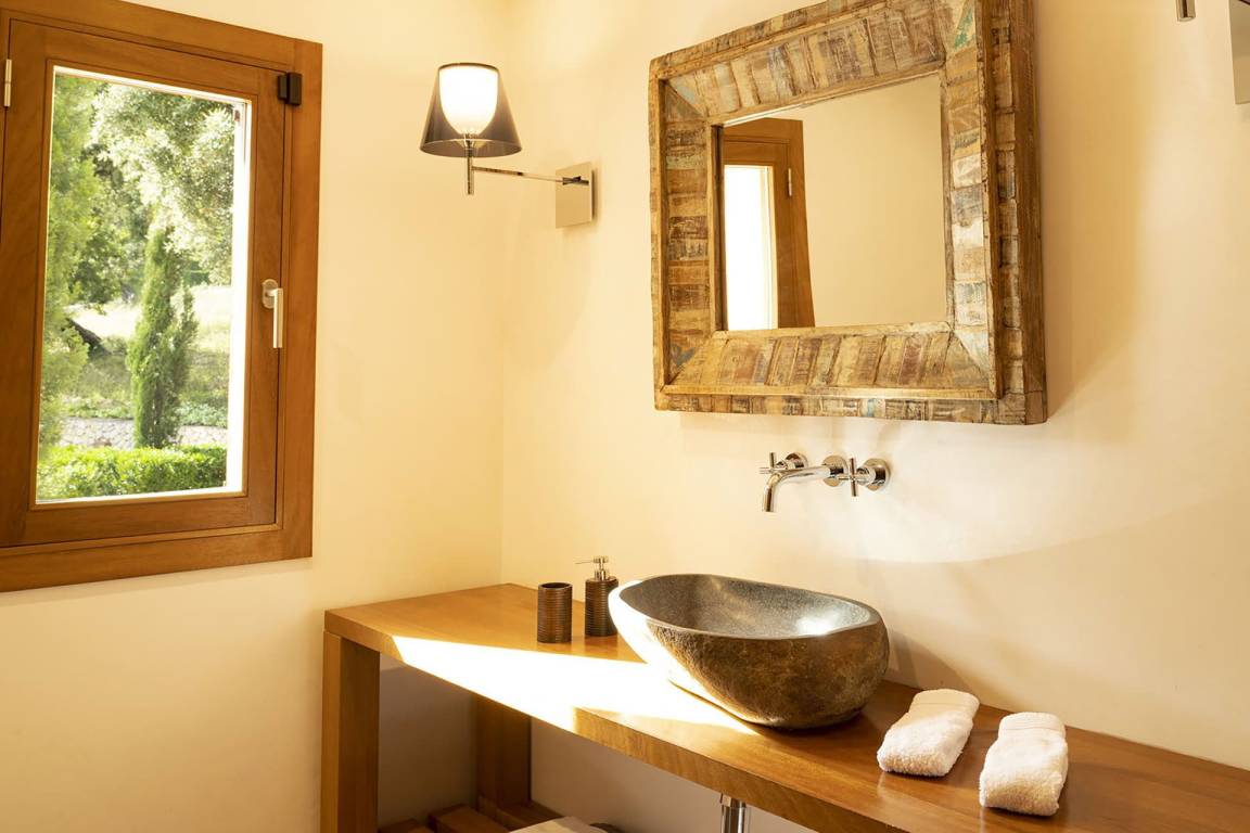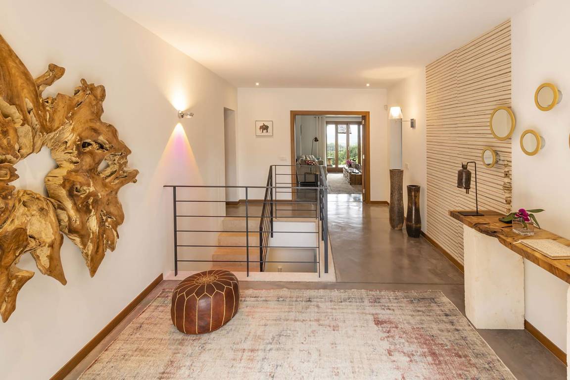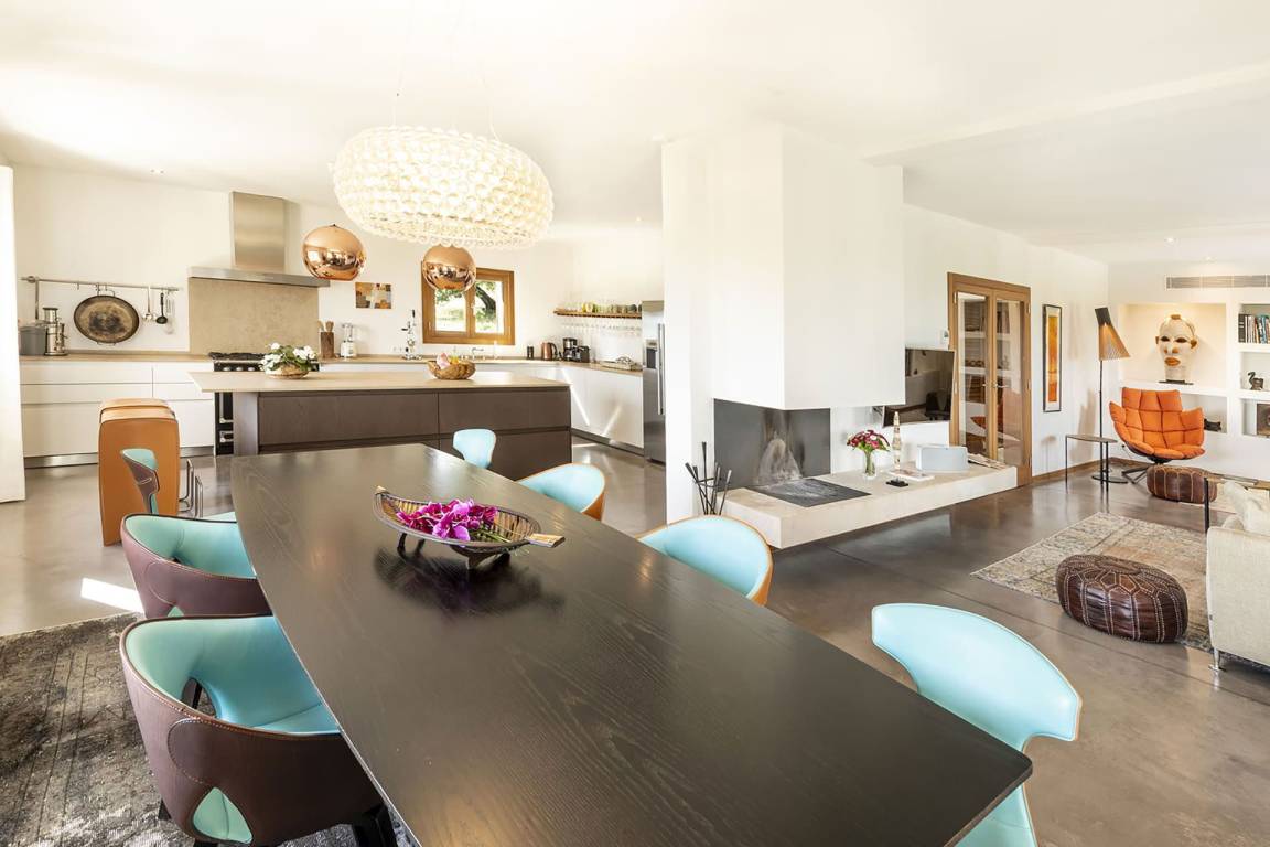 Das Erdgeschoss umfasst einen großen offenen Wohnbereich mit Wohnzimmer, Sofas, Fernseher und Kamin mit offenem Herd, Essbereich mit Tisch und Stühlen sowie vollständig ausgestatteter Küche. Ein zweites Wohnzimmer auf dieser Ebene dient der Unterhaltung und ist mit einem Kinosystem mit 4K-Beamer und Leinwand sowie einem Billardtisch ausgestattet. Die Außenbereiche sind um eine Pergola und einen beheizten Salzwasserpool von 10 x 4,7 Metern mit einer Tiefe von 180 Zentimetern angeordnet. Ein großes Holzdeck mit Sonnenliegen, eine Außendusche und ein Grillbereich mit Holzofen schaffen ideale Voraussetzungen für Mahlzeiten im Freien. Zur Verfügung stehen eine Tischtennisplatte, ein Basketballkorb und ein Tennisplatz, der mit der benachbarten Villa Bajenèa geteilt wird. Die beiden Objekte können zusammen gemietet werden, da sie sich auf demselben Grundstück befinden und eine kombinierte Kapazität von bis zu 20 Gästen ermöglichen.