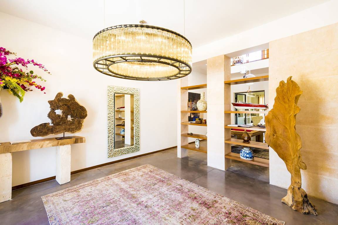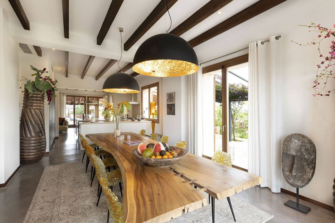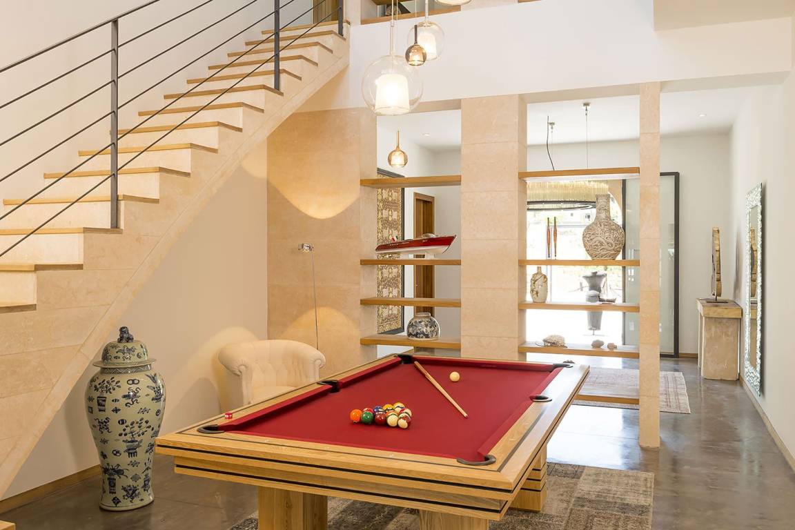 Im Erdgeschoss befinden sich das Hauptwohnzimmer mit komfortablen Sofas, die vollständig ausgestattete Küche und der Essbereich mit Tisch und Stühlen in einem offenen Grundriss. Ein separates Wohnzimmer dient der Unterhaltung und ist mit einem Fernseher und einem Billardtisch ausgestattet. Alle 5 Schlafzimmer sind mit je 2 Einzelbetten, einem eigenen Badezimmer, einer Ankleide, Klimaanlage und Fußbodenheizung ausgestattet. 4 der 5 Schlafzimmer verfügen über einen privaten Balkon; 1 Schlafzimmer beinhaltet einen separaten Bürobereich mit Schreibtisch und Stühlen.