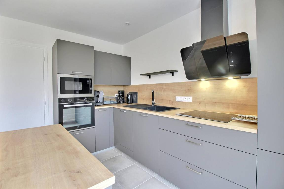 - Im Erdgeschoss: ein Eingang, ein Wohnzimmer mit Wohnzimmer, Wohnzimmer und Einbauküche, ein Schlafzimmer (1 Bett 140 x 190) mit eigenem und kommunizierendem Duschbad, eine separate Toilette mit Waschbecken. Sie haben auch eine Garage, die als Waschküche und Abstellraum für Ihre Fahrräder und Strand-/Sportausrüstung dient.