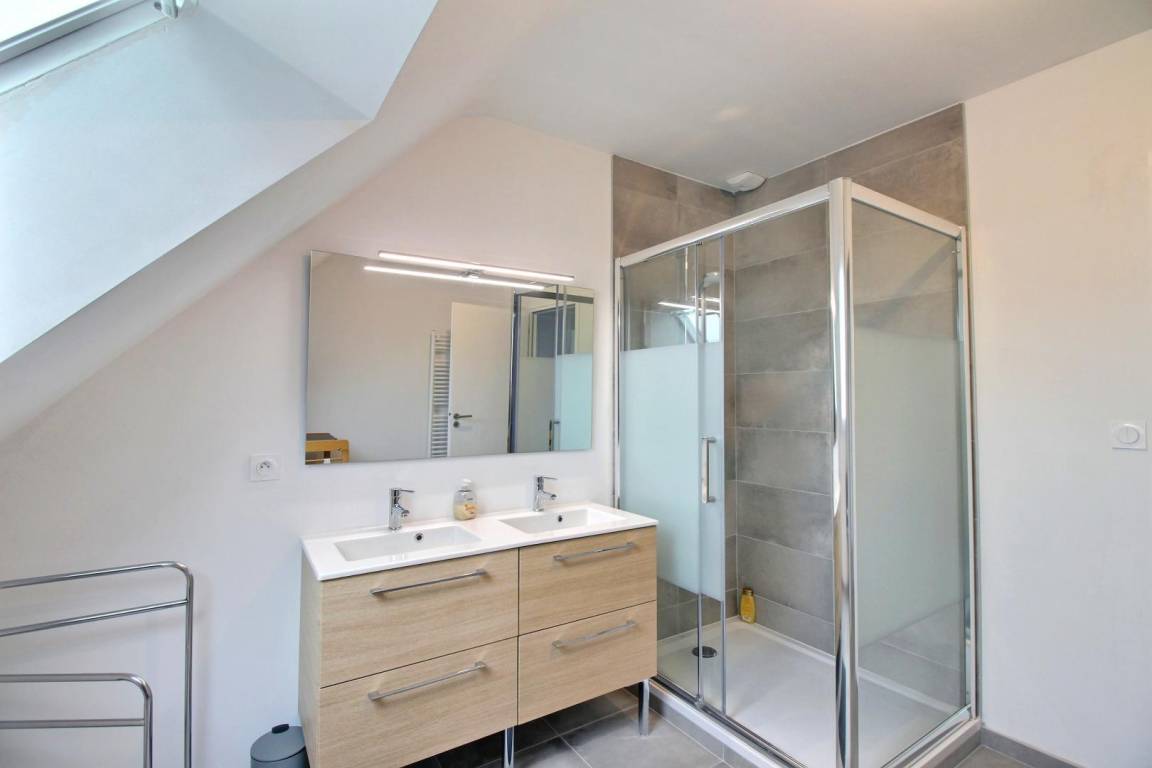 - Obergeschoss: 1 Schlafzimmer (1 Bett 160 x 200), 1 Schlafzimmer (1 Bett 140 x 190), 1 Schlafzimmer mit 2 Betten 90 x 190, ein Duschbad und eine separate Toilette.