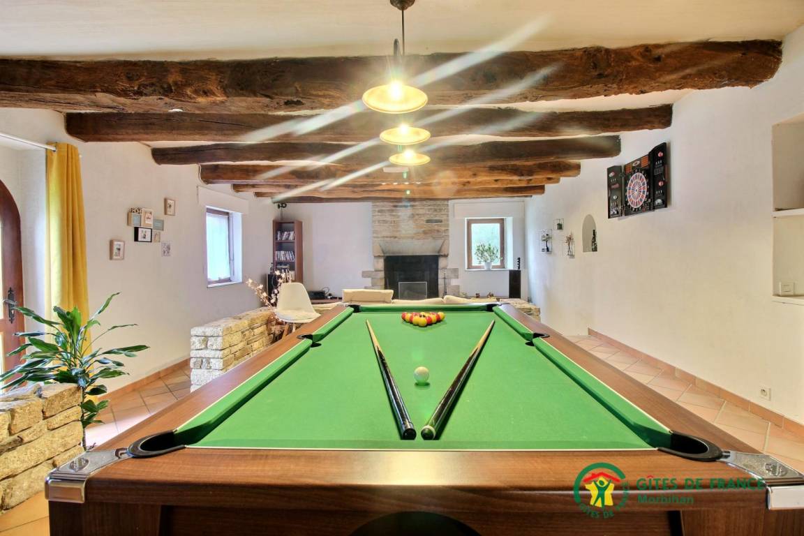 „Bonjour à tous... Nous avons passé un très bon séjour dans cette Maison ! Même si de prime abord elle semble un peu Rustique, la grande pièce de Vie (avec le Billard et l'installation Audio) lui procure une Ambiance des plus agréables !Christophe est une personne attachante et très à l'écoute ! J'ai pu cuisiner, jouer au Billard (avec une ambiance Sonore digne d'un Club) et même fais une soirée Karaoké avec des Amis ! Je recommande vivement ce lieu pour un temps de pause dans la Campagne Bretonne...“