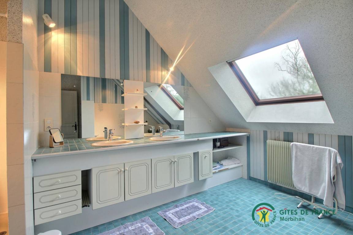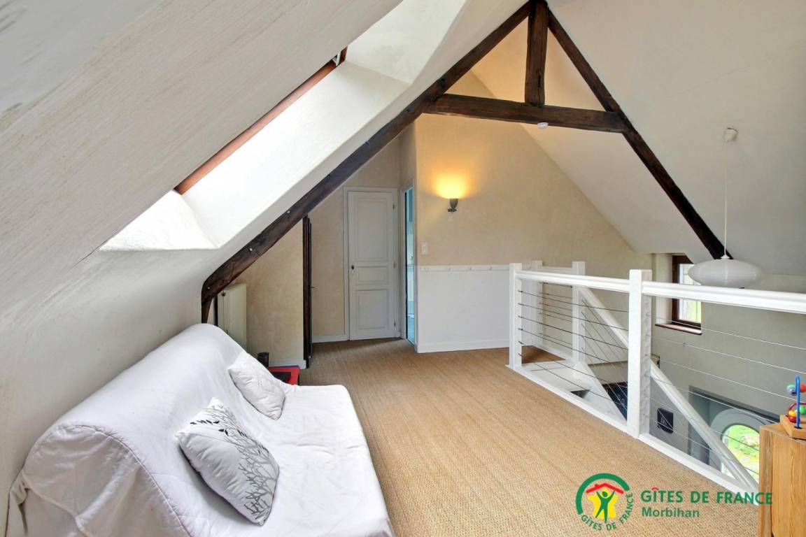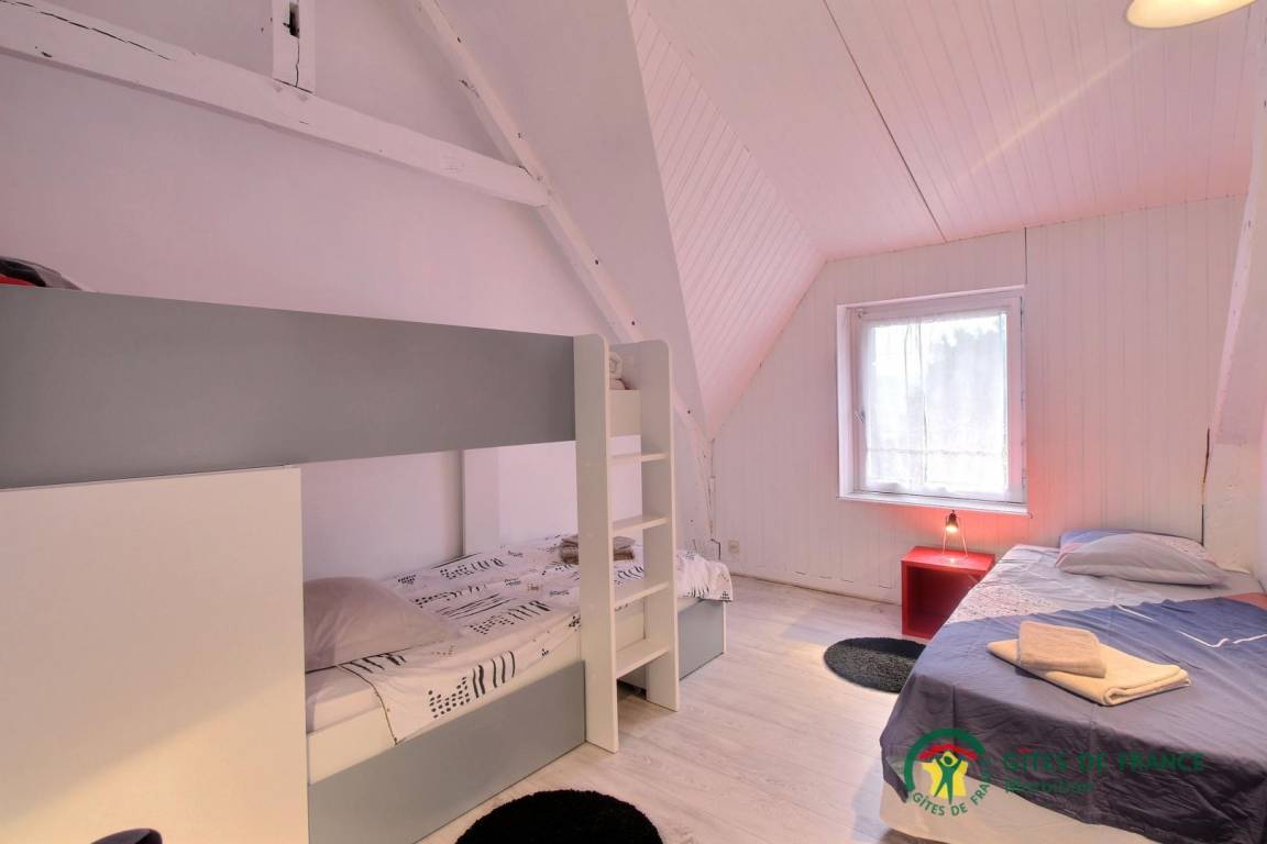 - Obergeschoss: ein Zwischengeschoss mit 3 Schlafzimmern (2 140x190-Betten und 3 90x190-Betten, darunter 1 Etagenbett), ein Badezimmer (Badewanne und Dusche) und eine separate Toilette.