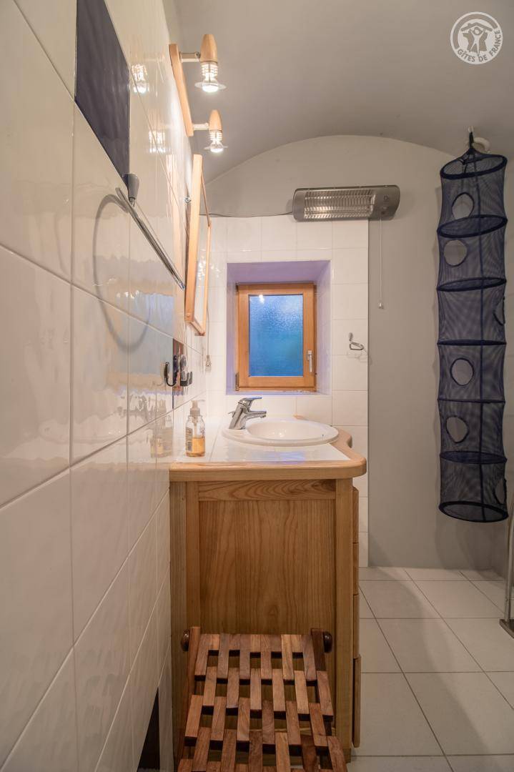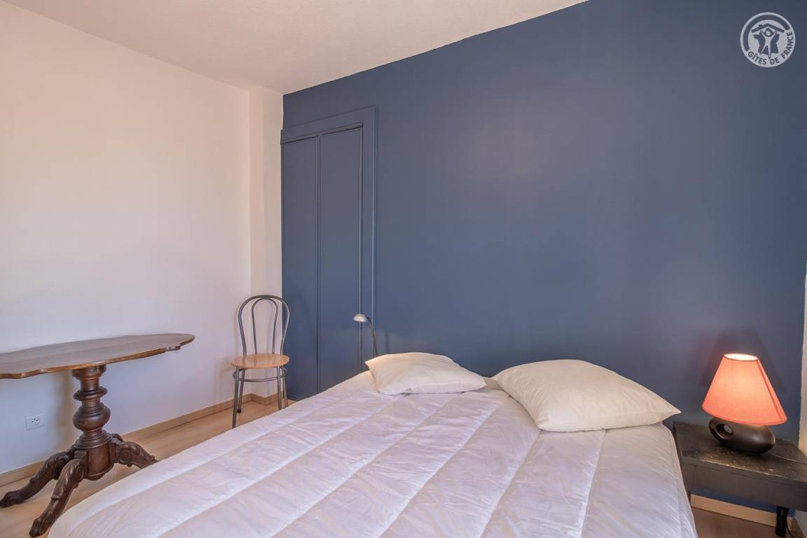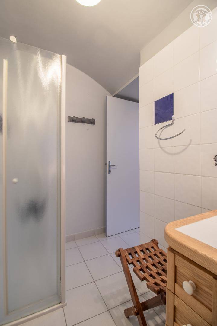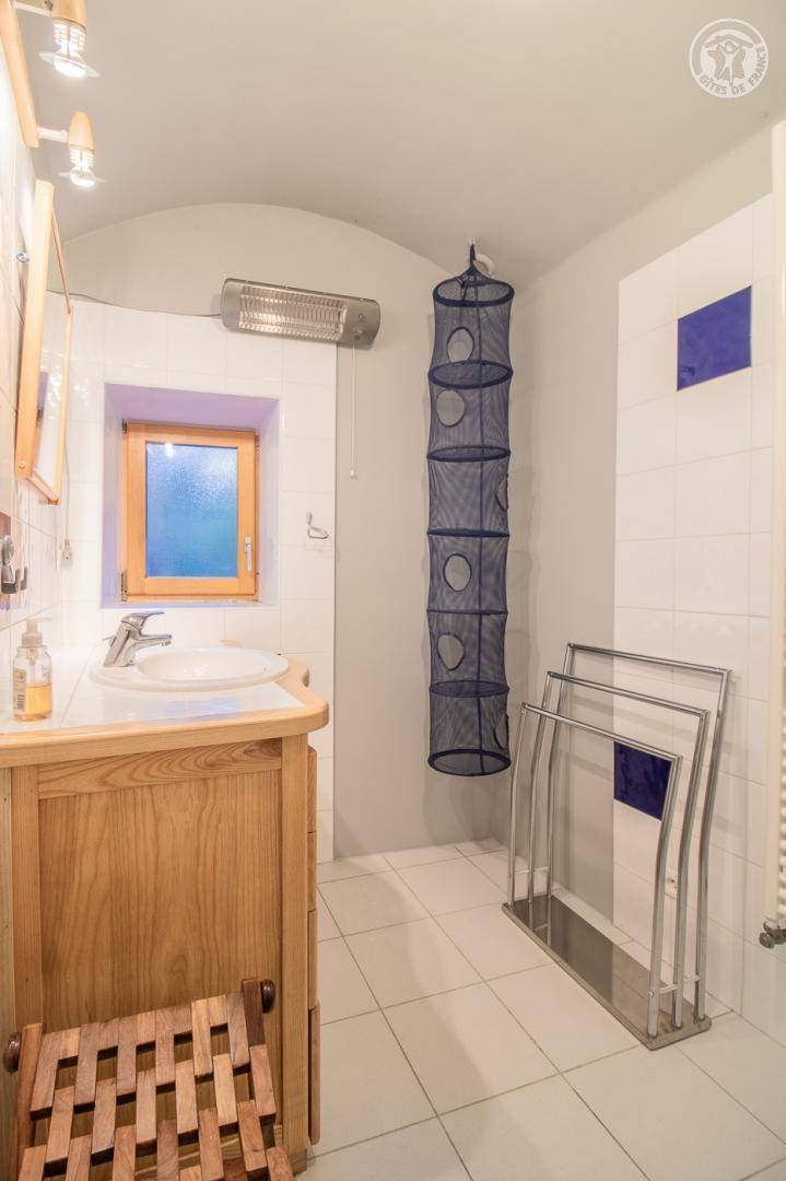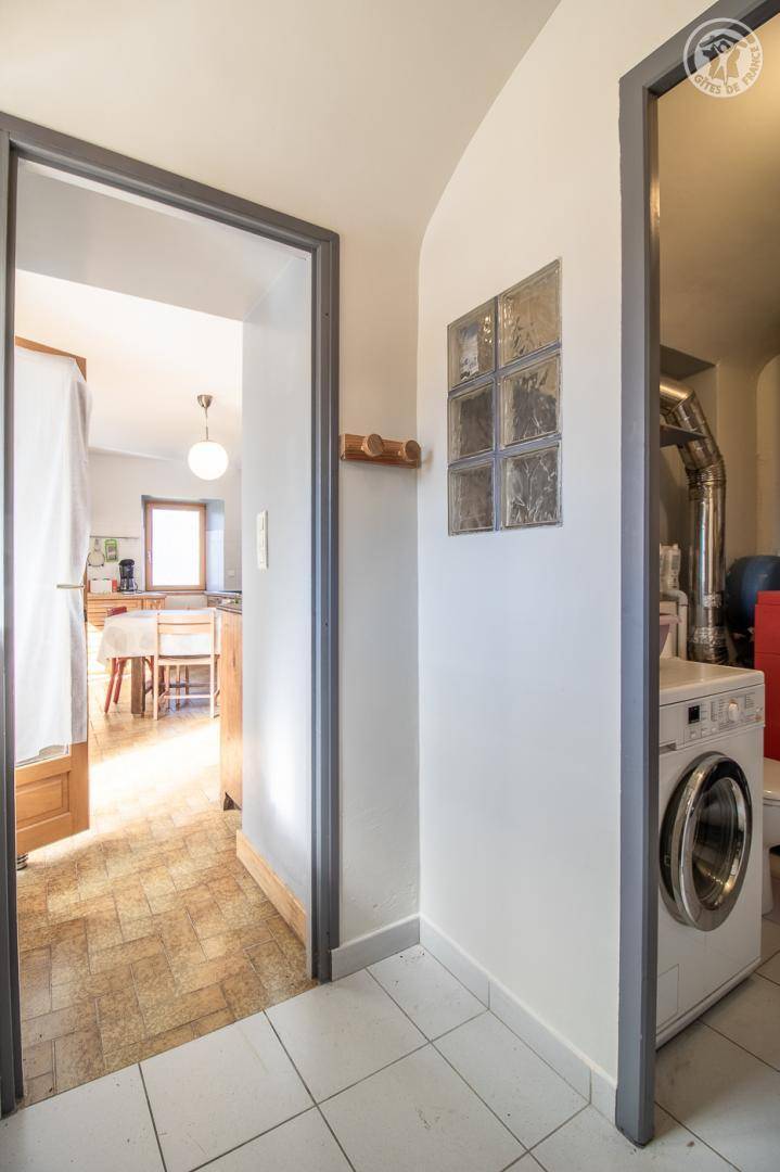 Das Haus grenzt an eine weitere ganzjährige Vermietung hinter dem Haus der Eigentümer. Eingang, Waschküche mit WC, Waschbecken und Waschmaschine. Küche und Esszimmer, Wohnzimmer, Badezimmer (Dusche). Im 1. Stock: 3 Schlafzimmer (2 Einzelbetten 90 x 190 cm / 1 Doppelbett 140 x 190 cm / 1 Doppelbett 160 x 200 cm), Badezimmer (Badewanne) mit WC. Private Terrasse und großer Garten mit Blick auf Le Colombier. Privater Parkplatz (2 Autos).