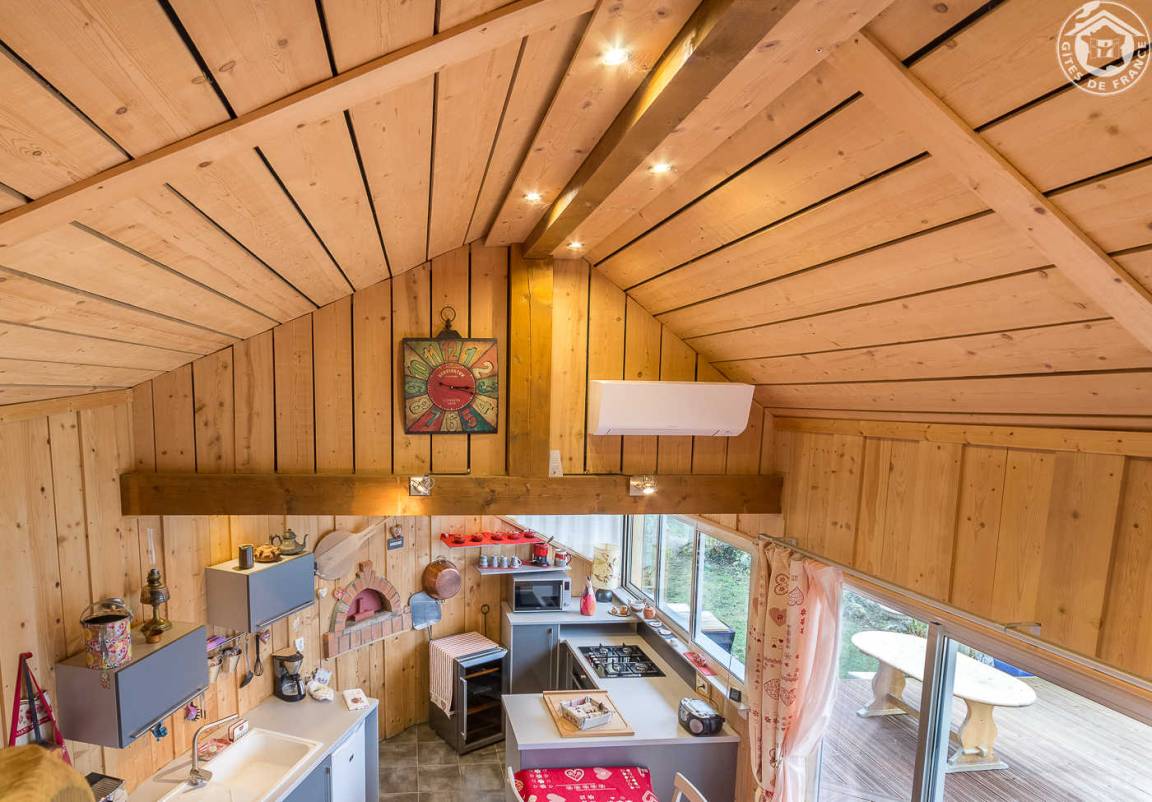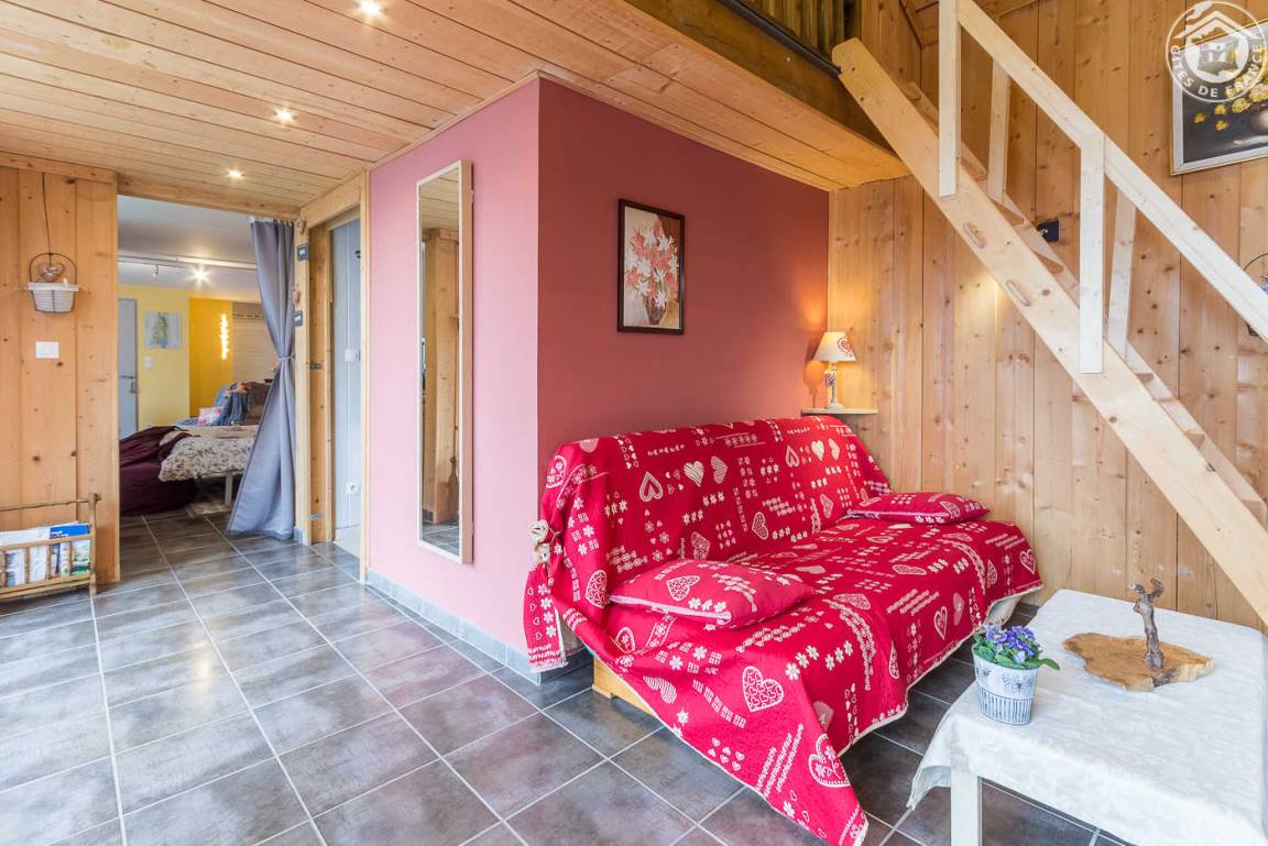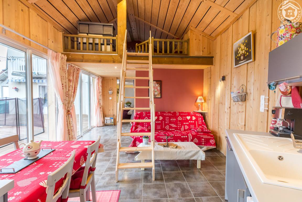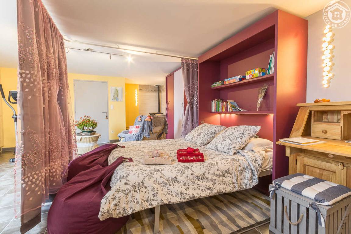 Ferienwohnung im Haus der Eigentümer. Erdgeschoss (mit separatem Eingang auf einer Ebene): ein Raum, der in einen Schlafbereich umgewandelt wurde (durch einen Vorhang getrennt) mit einem Doppelbett 160 x 200 cm (Formgedächtnismatratze), einem Loungebereich mit Fernseher (Multimedia Netflix und Youtube), eine Soundbar mit Bluetooth-Lautsprecher, WLAN-Verbindung, ein Badezimmer (Dusche und WC), ein Wohnzimmer-Küchen-Loungebereich (1 Schlafsofa 130 x 190 cm), ein Zwischengeschoss mit Zugang über eine Leiter (Gesamthöhe unter der Decke weniger als 1,80 m : 1 Doppelbett 140 x 190 cm und 1 Einzelbett). Umschaltbare Klimaanlage, Pelletofen. Bettwäsche und Handtücher inklusive. Betten bei Ankunft bezogen. Terrasse mit privatem Außenbereich. Schwimmbad gemeinsam.
