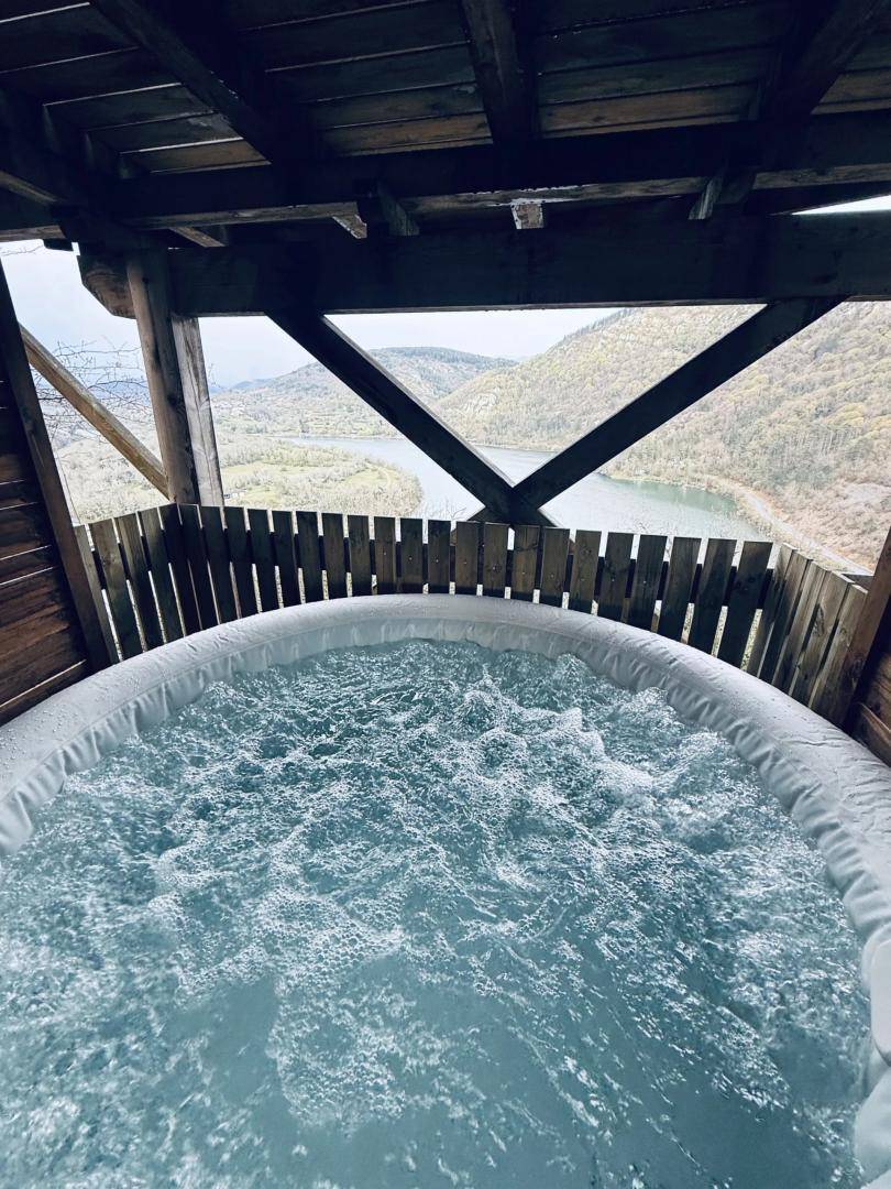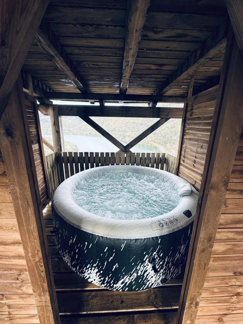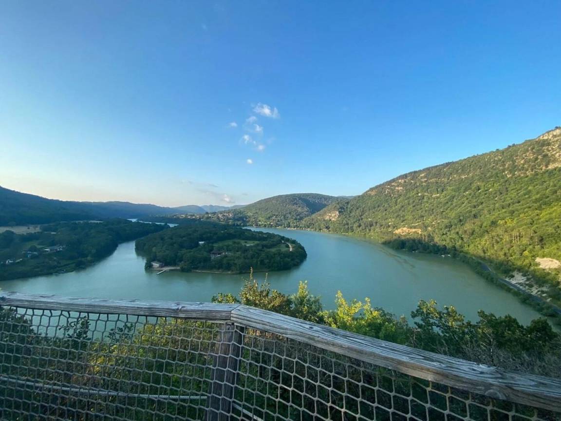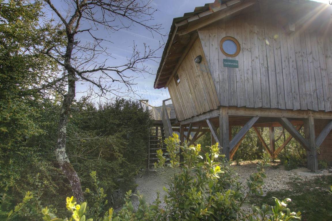 „Nous avons passé trois jours et nuits dans la cabane la Genévrière. Tout y est bien pensé et à 2 la place est suffisante. A 4, ce doit être plus compliqué...La vue de la terrasse est vraiment spectaculaire, nous l'avions choisi pour cela et nous n'avons pas été déçu ! Nous n'avons pas vu le propriétaire, clé dans une boite à code pour l'arrivée et le départ, mais nous avons bien aimé l'autonomie que cela procure. Nous avions eu toutes les infos nécessaires en amont. En cette fin de saison, il n'y avait pratiquement personne dans les autres cabanes, et ce calme nous a permis d'observer des chamois sur le site même !Rando dans les gorges de l'Ain (rochers de Jarbonnet) très sympa avec des points de vue spectaculaires, visite de l'ancienne cuivrerie de Cerdon très intéressante. Le site est actuellement en travaux pour accueillir une quinzaine de cabanes supplémentaires, il risque d'y perdre un peu de son charme...“