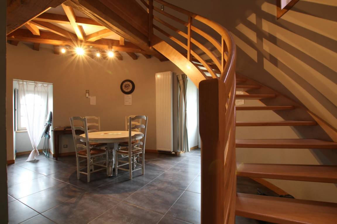 „Le gîte lui-même, reconstruit avec goût et souci du détail dont les charpentes et gîtages visibles, rien qu'à elles, valent le détour !Celui est situé dans un village très calme et authentique à la fois proche de commerces accessibles à quelques minutes en voiture, il satisfait largement pour un couple avec deux enfants et dispose de tout l'équipement nécessaire pour ne pas s'encombrer les bagages. Les propriétaires sont également très accueillants et disponible. Pour les personnes qui auraient des difficultés à se déplacer, pensez que celui-ci est réparti sur trois niveaux. Nous le conseillons vivement !“