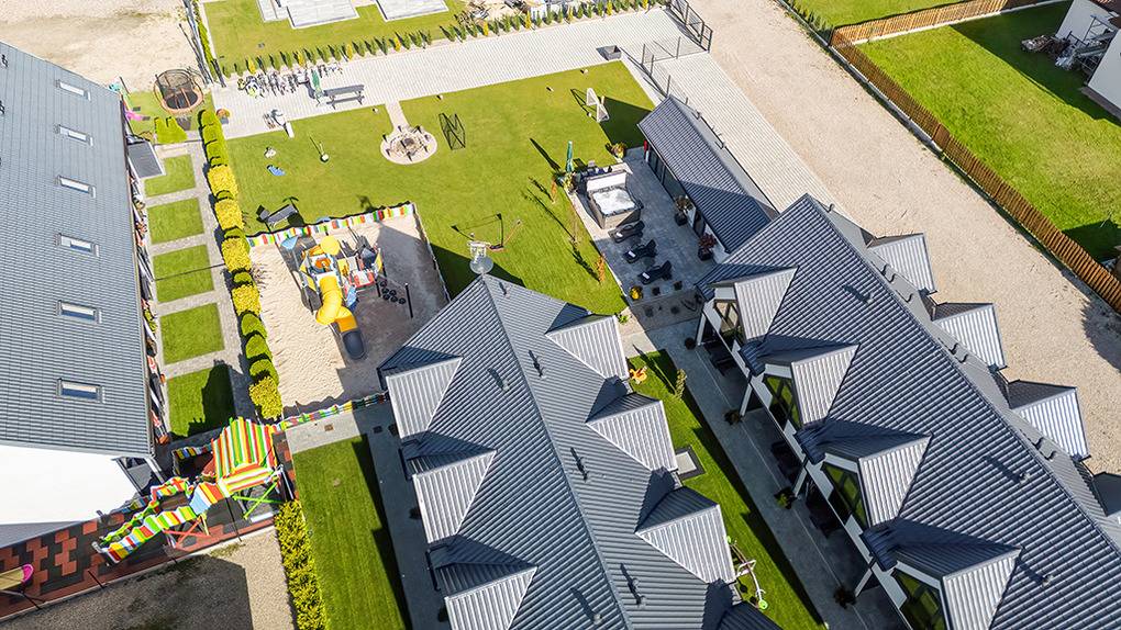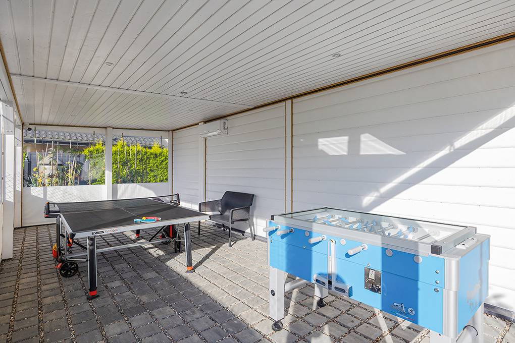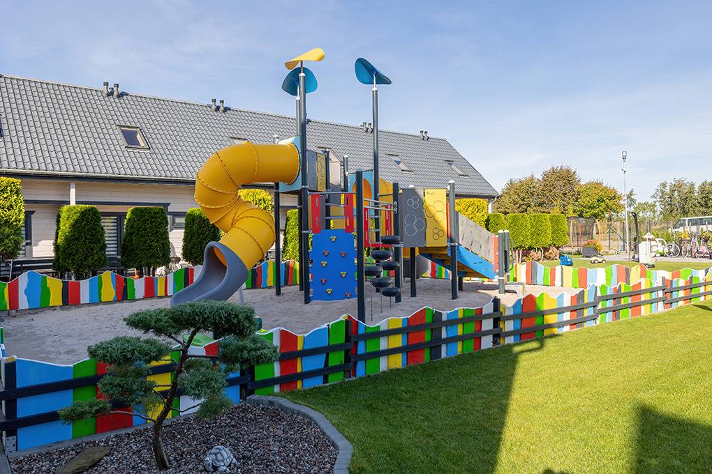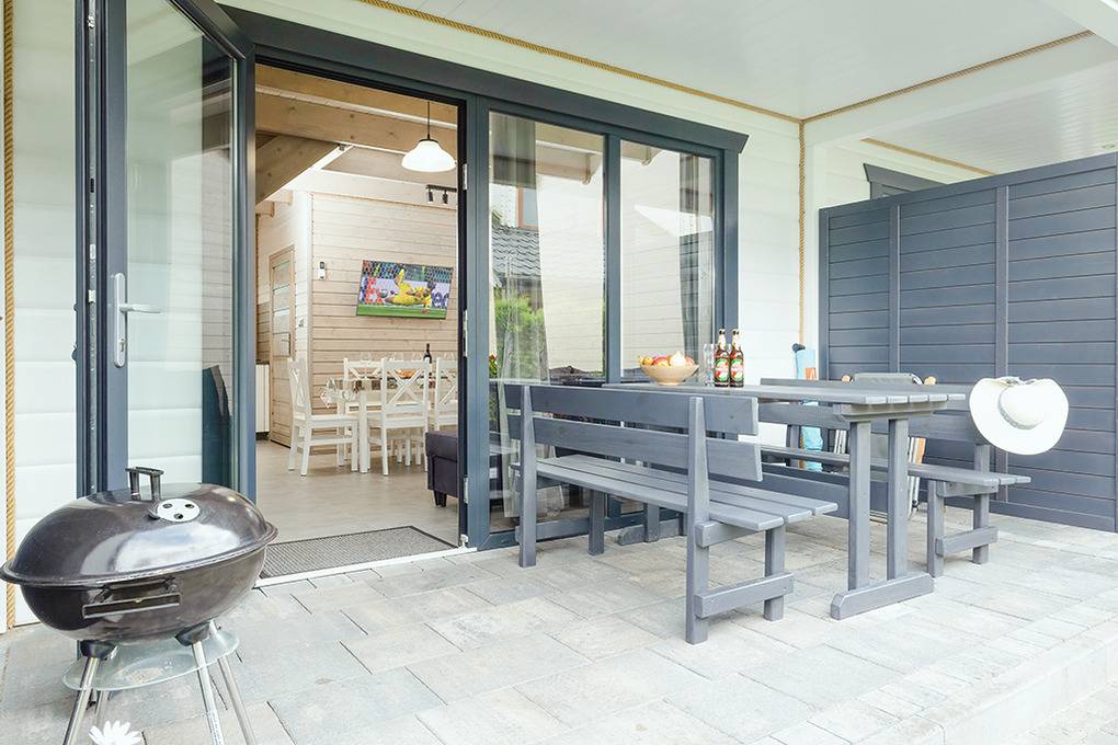Haus: Gepflegte Ferienhausanlage mit insgesamt 19 schönen Reihenhäusern, 2017 - 2023 erbaut. In der Anlage: Rezeption. Zwei Kinderspielplätze mit Schaukeln, Rutschen, Klettergerüsten, Wippen, Sandkasten. Überdachte Spielecke für Kleinkinder. Tischtennis. Kickertisch, Fahrradverleih. Sauna, Whirlpool (Gebühr). Lagerfeuerstelle.