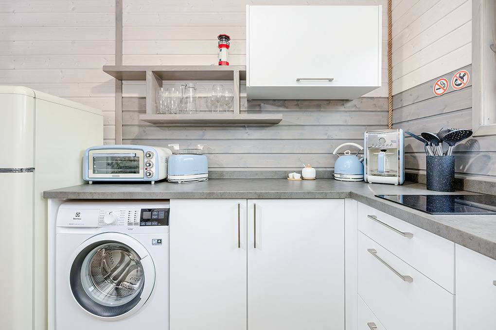 Elegante Reihenhäuser mit geschmackvoller Einrichtung. Kostenloses Internet über WLan. Waschmaschine. E-Heizung, Warmwasser über E-Boiler (100 l). Überdachte Terrasse mit Sitzmöbeln, Grill, davor kleine Rasenfläche. 1 Parkplatz/Ferienhaus inklusiv, zweiter Parkplatz (Gebühr).