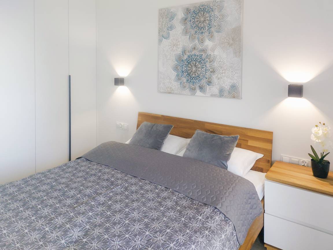 PL 51.18 Wohnung 2-6 Pers.: Geschmackvoll eingerichtete 2-Zimmerwohnung mit 39 qm Wohnfläche, 1. Etage. Wohn-/Essraum mit bodentiefen Fenstern, Couchgarnitur (Ausziehcouch 2 Pers.), SMART-TV, Internet (WLAN), Esstisch, sehr gut ausgestatteter Küchenzeile (4 Platten Induktionskochfeld, Abzugshaube, Backofen, Mikrowelle, Tiefkühlschrank (60 Liter), Spülmaschine). Klimaanlage. Doppelzimmer mit Zugang zum Balkon. Bad: Du, Wb, WC, Waschmaschine. Balkon mit Sitzmöbeln.