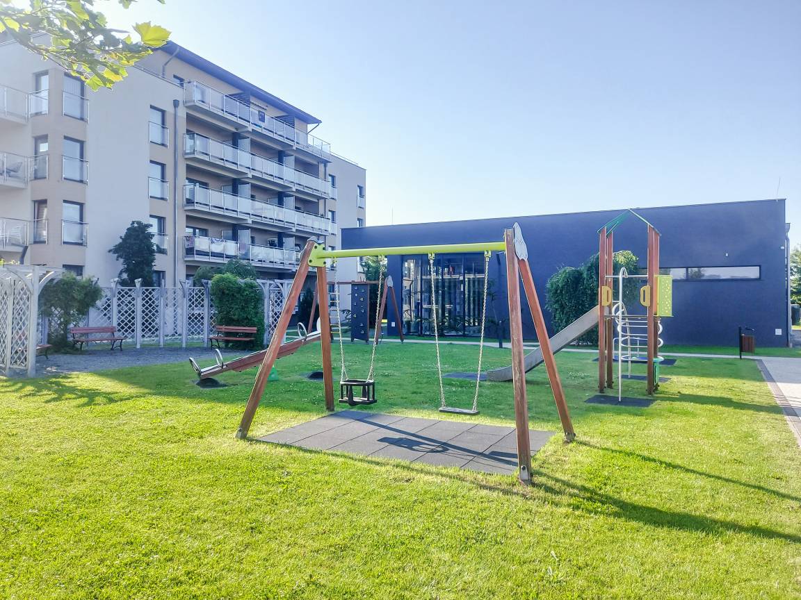 Haus: Stilvolle Residenz mit schönen Ferienwohnungen, 2023 neu erbaut. Moderne Einrichtung. Kostenloser Internetzugang über WLAN. Zentralheizung. Klimaanlage im Wohnzimmer. Alle Fewos mit Terrasse oder Balkon. Aufzug im Haus. 1 Tiefgaragenplatz/Fewo. In der Anlage: Kinderspielplatz (Rutschen, Wippen, Klettergerüst, Sandkasten, Trampolin).