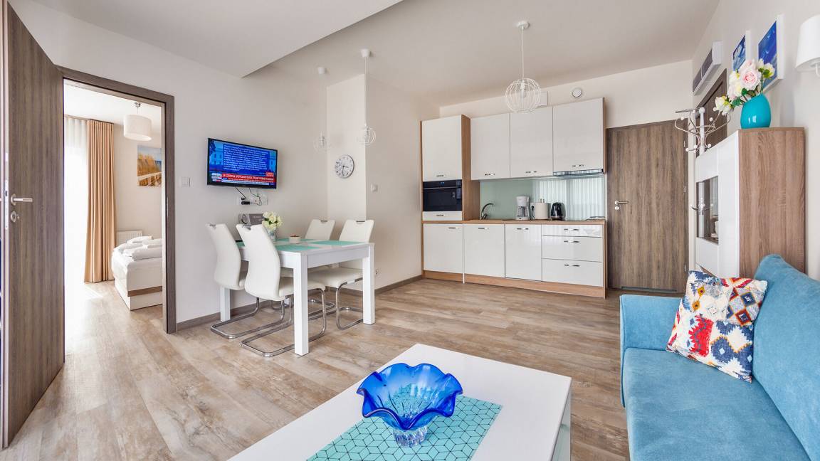 Zu den gewählten Apartments darf man mit dem Hund ankommen. Die zusätzlichen Kosten des Aufenthalts mit einem vierbeinigen Freund betragen 100 PLN (Einzelgebühr). Die Gäste, die den Aufenthalt mit dem Hund planen, bitten wir um eine frühere Kontaktaufnahme mit unserem Service im lokalen Büro.