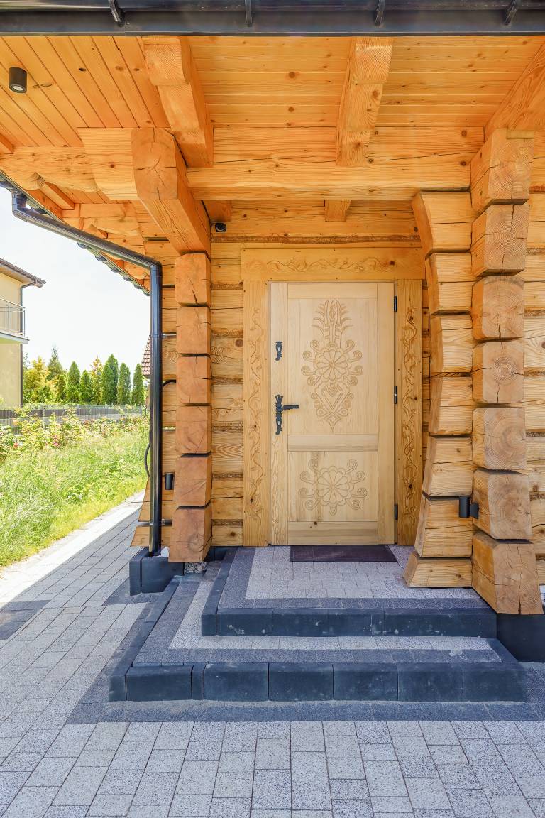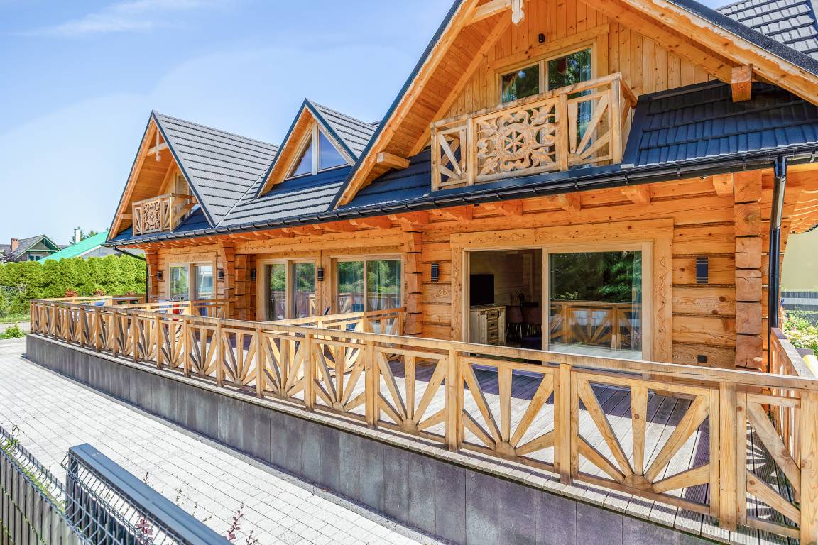Haus: Außergewöhnliche, individuell gestaltete Ferienhausanlage im Blockbohlenhaus-Stil mit 3 Wohneinheiten, 2023 erbaut.