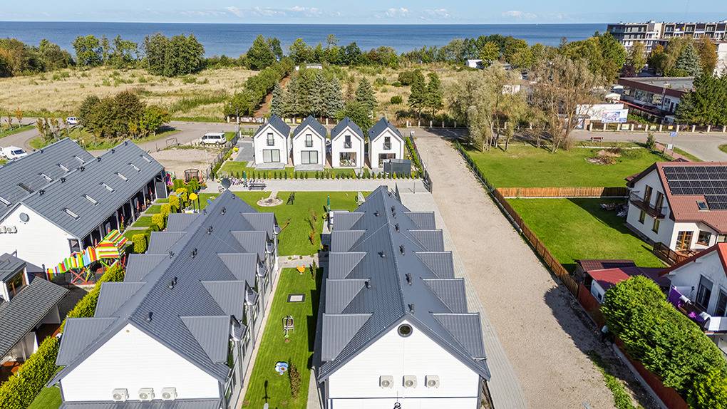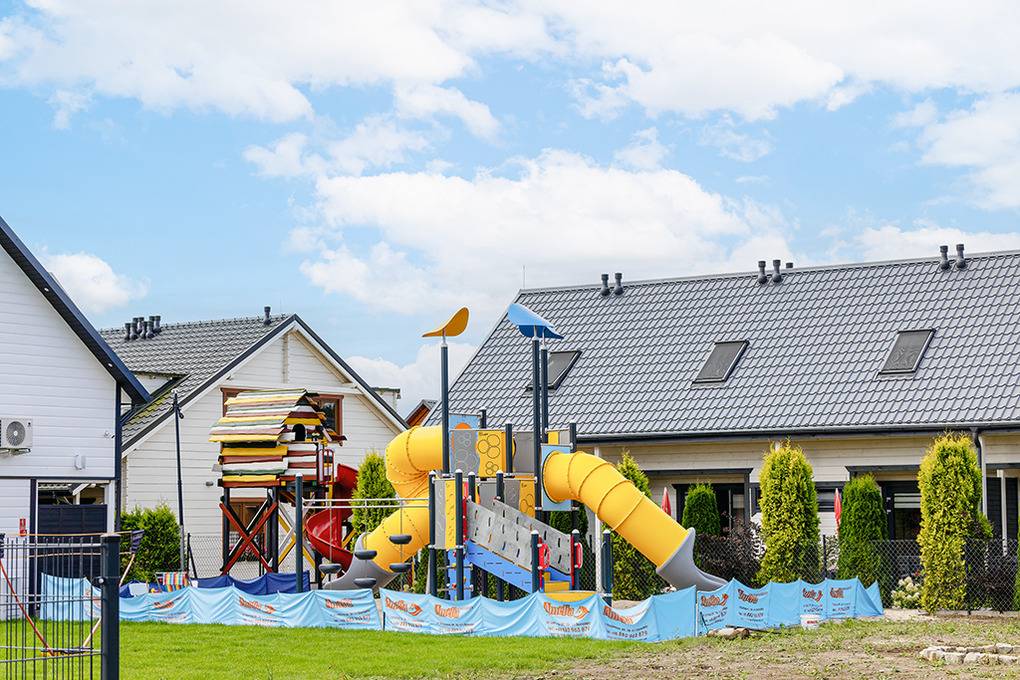 Haus: Gepflegte Ferienhausanlage mit insgesamt 19 schönen Reihenhäusern, 2017 - 2023 erbaut. In der Anlage: Rezeption. Zwei Kinderspielplätze mit Schaukeln, Rutschen, Klettergerüsten, Wippen, Sandkasten. Überdachte Spielecke für Kleinkinder. Tischtennis. Kickertisch, Fahrradverleih, Sauna, Whirlpool (Gebühr).