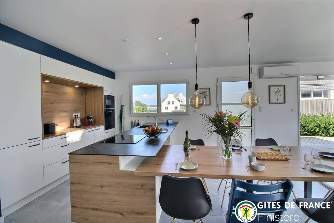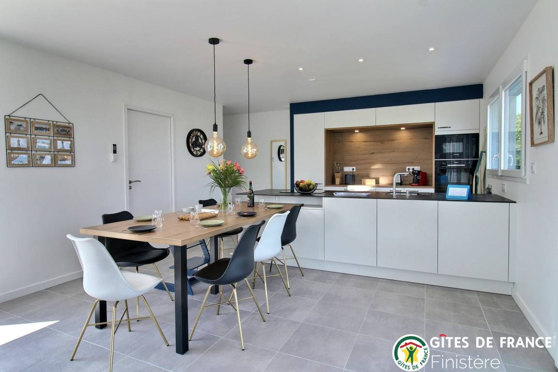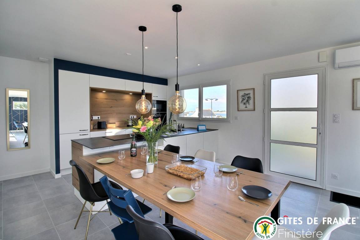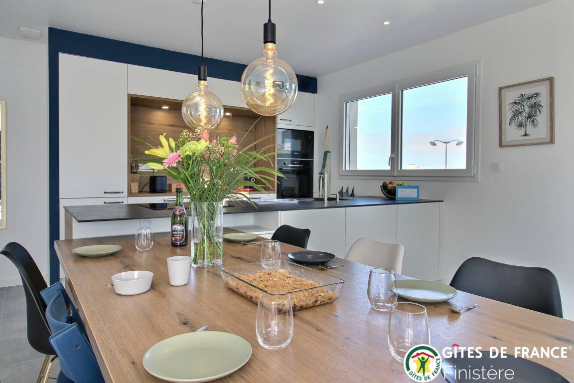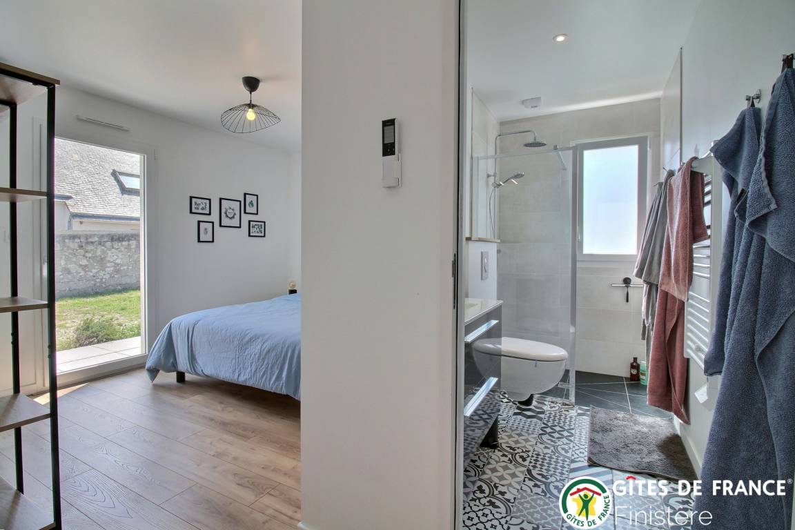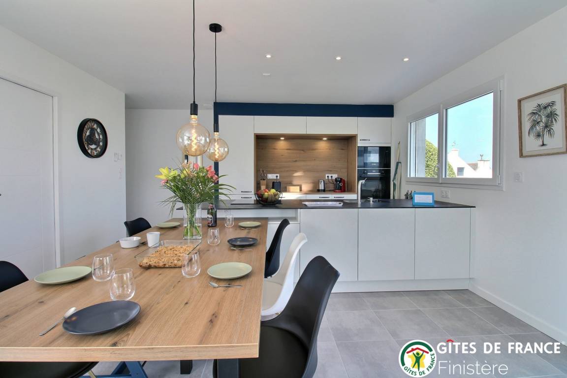 „Formidable séjour passé dans une jolie maison très lumineuse et décorée avec beaucoup de goût à seulement quelques pas de la plage où il fait bon se promener sur son sable fin, offrant une vue magnifique permettant d'admirer entre autres le levé du soleil sur la plage du Dossen et l'Ile de Sieck chaque matin. Un accueil très chaleureux du propriétaire nous offrant un délicieux Far Breton maison et une bonne bouteille de cidre. Rien ne manquait et nous ne manquerons pas de partager cette expérience très agréable durant laquelle nous avons également pu savourer le calme du quartier. Encore merci pour votre accueil, à une prochaine fois avec plaisir Guillaume & Romain“