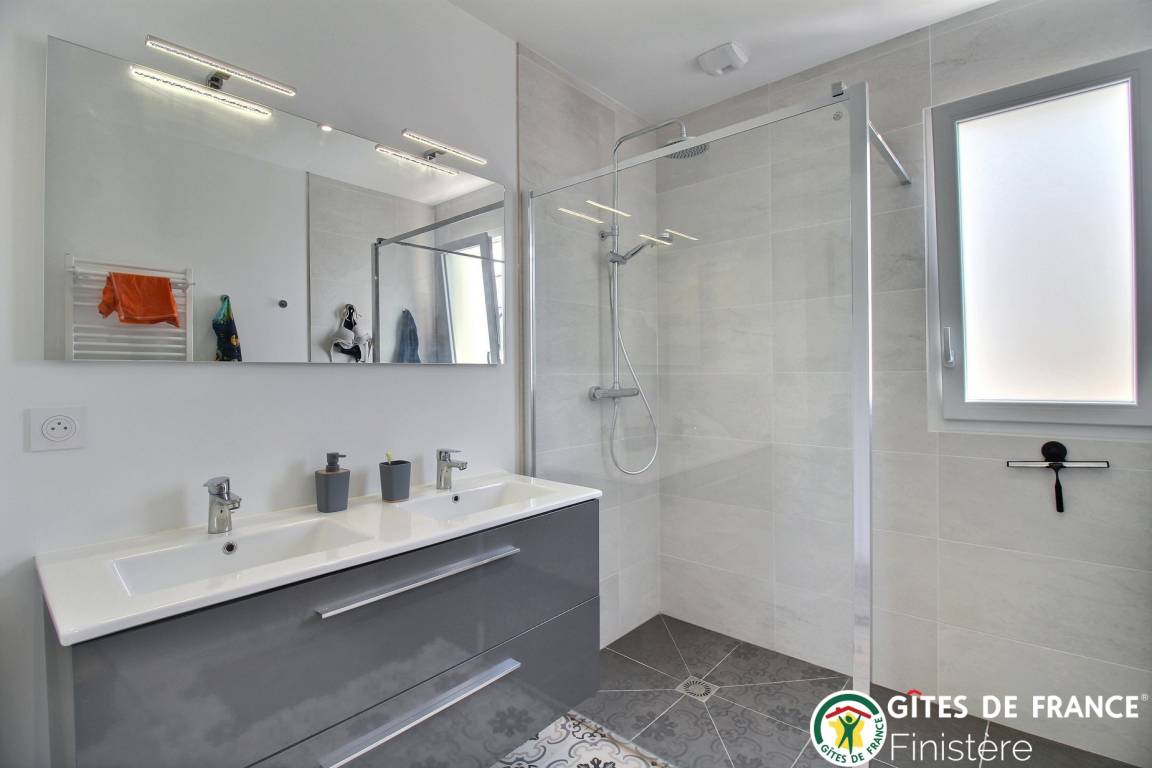 „Accueil très sympathique du propriétaire, accompagné d’une agréable surprise, un far breton fabrication maison et une bouteille de cidre pour bien commencer le séjour. La maison toute récente est située à proximité de la plage et à quelques dizaines de mètres d’un accès direct au GR 34, idéal pour randonner ou se balader simplement, le long d’un littoral magnifique et sauvage. Décorée avec goût, dotée d’équipements de confort de qualité, rien ne manque pour optimiser son séjour et se sentir bien immédiatement. Sans oublier la situation géographique de Moguériec (Sibiril) qui offre à proximité de nombreuses visites touristiques très variées. Une belle découverte que je recommande. J’ai vraiment passé une excellente semaine.“