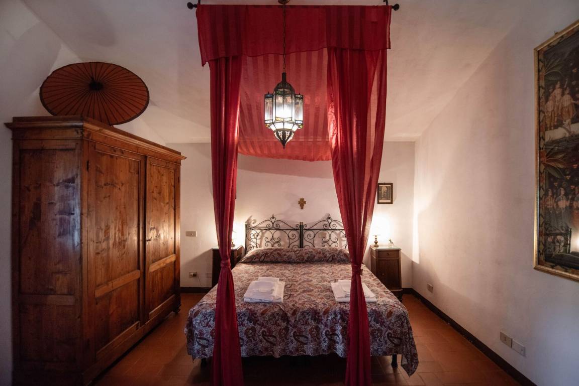 Schlafzimmer mit Bad 1: Doppelbett, WiFi Internet, tragbarer Ventilator, Waschbecken, WC, Bidet, Badewanne, Dusche, Fön.