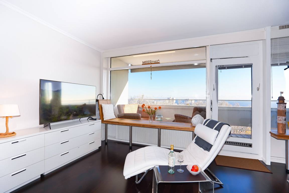 Ostseeblick Unsere Ferienwohnung liegt im ruhigen Ostseeort Sierksdorf mit Blick über die Lübecker Bucht. Wer Fun und Action haben möchte, kann dies im fußläufig zu erreichenden Hansapark (von Anfang April bis Ende Oktober geöffnet) erleben. Mit dem Rad lassen sich die umliegenden Ostseeorte und das traumhafte Hinterland erkunden. Unsere Ferienwohnung (barrierefrei) befindet sich in der 6. Etage und hat einen herrlichen Blick über die Ostsee. Sie ist problemlos mit dem Fahrstuhl zu erreichen und bietet auf 1,5 Zimmer Platz für max. vier Personen. Der Strand liegt nur 500 Meter entfernt. Das Appartement (Nichtraucher und keine Haustiere) ist voll - inkl. WLAN und Festnetztelefon - ausgestattet und bietet auf 50 qm ausreichend Platz für max. 4 Personen. Der Anlage ist nur ca. 500 Meter vom Sierksdorfer Ostseestrand entfernt. Ein Parkplatz auf dem Oberdeck steht zur Verfügung. Ein Wäschepaket (Bettwäsche EUR 18,00, Handtuchpaket EUR 17,00) kann pro Person gebucht werden. Der offen gestaltete Wohnraum verfügt über ein komfortables Eck-/Schlafsofa , von welchem Sie den tollen Ausblick auf die Lübecker Bucht genießen können. Die zum Wohnzimmer offene Küche mit Essbereich ist voll ausgestattet und lädt zum verweilen ein. Auch von hier haben Sie einen herrlichen Blick auf das Meer. Das Badezimmer mit Wanne und WC ist komfortabel ausgestattet. Im kleinen Schlafzimmer schlafen Sie bequem mit 2 Personen. Bei einem kalten oder heißen Getränk genießen Sie den wundervollen Blick auf die Bucht.