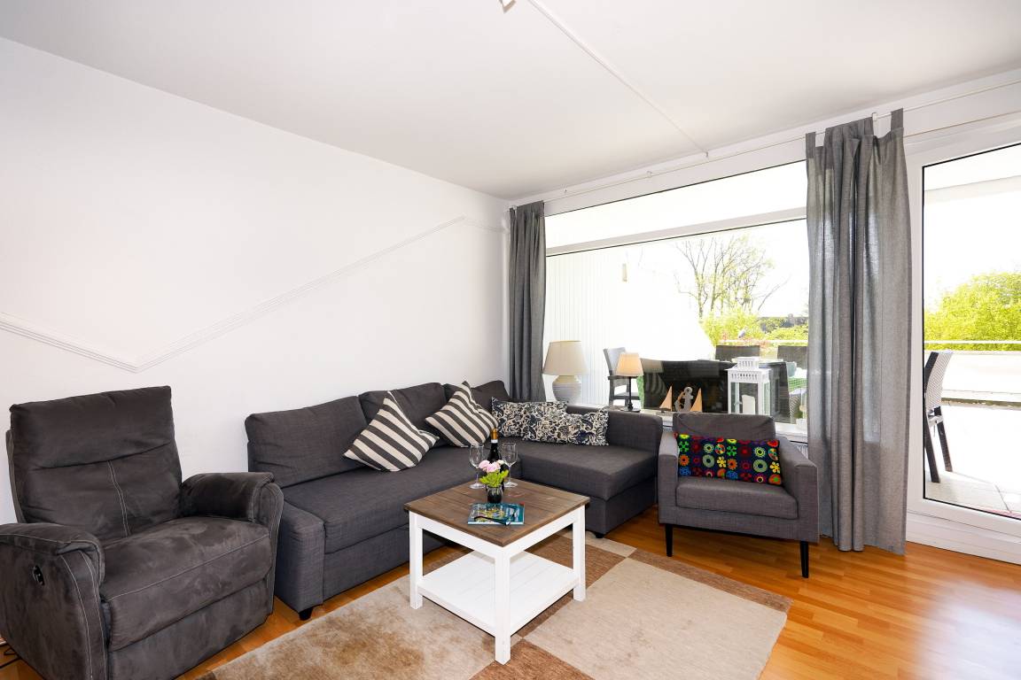 Die Ferienwohnung liegt im 4. Stock eines ruhigen Apartmenthauses in der Panoramic Ferienanlage Sierksdorf und hat eine Größe von etwa 50 Quadratmetern. Das gemütlich eingerichtete und gepflegte Apartment kann mit dem Fahrstuhl bequem erreicht werden und bietet 4 bis 5 Feriengästen Platz. Der helle Wohnraum verfügt über eine offene Küche und ist mit einer bequemen Polsterlandschaft sowie einem ansprechenden Essbereich eingerichtet. In der modernen Küchenzeile sind alle Geräte und Kochutensilien enthalten, um auch mal eigene Gerichte zuzubereiten. Das Elternschlafzimmer ist mit einem Doppelbett eingerichtet, ein Etagenbett befindet sich im Kinderschlafzimmer. Das geräumige Bad verfügt über eine Dusche. Ein großer Flachbildfernseher zählt ebenso zur Einrichtung des Apartments. Der ca. 20 qm große Balkon verwöhnt mit einer Aussicht ins Grüne. Ein Schwimmbad liegt unmittelbar vor der Haustür, wer jedoch ein Bad in der klaren Ostsee bevorzugt, findet den Strand in etwa 350 Metern Entfernung vor. Hunde sind in der Ferienwohnung stets gern gesehene Gäste (gegen Gebühr). Als Bonus zu der Zigarettenpause dürfen Raucher Ihre Zigarette auf der Terrasse genießen, denn Rauchen ist in der Wohnung nicht erwünscht. LAGE Das Ferienappartment Nr. C-4/11 liegt im Panoramic Ferienpark in Sierksdorf. Neben dem nahegelegenen feinsandigen Ostseestrand bietet die Anlage viel Wohnkomfort und Annehmlichkeiten für Alleinreisende wie auch für Familien. Urlaubsgäste können ihre vierbeinigen Freunden mit Auslauf auf hohem Niveau verwöhnen, denn ein speziell für Hunde vorgesehener Strandabschnitt liegt ganz in der Nähe. Um die benötigten Utensilien für ein morgendliches Frühstück auf der Terrasse zu besorgen, genügt ein kurzer Spaziergang zum Kiosk des Ferienparks. Weitere Einkaufsmöglichkeiten und Supermärkte liegen etwa 3 Kilometer entfernt. Für einen abwechslungsreichen Urlaub an der Ostsee sorgen die zahlreichen Attraktionen in der Umgebung. Ein Sportflugplatz mit Rundflugangebot, Schwimmbäder, Restaurants mit einem vielfältigen Angebot an fangfrischem Fisch sind nur einige Möglichkeiten, den Ostseeurlaub erlebnisreich zu gestalten. Nahegelegene Sport- und Freizeitmöglichkeiten bereichern die Ferientage auf vielfältige Weise. Ob Bowling, Tennis, Wandern, Segeln oder Rundflüge über die Lübecker-Bucht, der erlebnisreichen Gestaltung des Ostseeurlaubs sind kaum Grenzen gesetzt. Zu den größten Attraktionen gehört der Hansapark, ein familienorientierter Freizeitpark, der weit über die Grenzen der Region bekannt ist und nur wenige Gehminuten entfernt liegt. Zahlreiche Restaurants für den Hunger zwischendurch wie auch mit einem Angebot an regionalen Gerichten befinden sich an der nahegelegenen Strandpromenade [&] in der näheren Umgebung. Sierksdorf ist auch ein idealer Startpunkt um die Lübecker Bucht zu entdecken. So lassen sich beispielsweise viele Badeorte bequem von Sierksdorf aus erreichen.