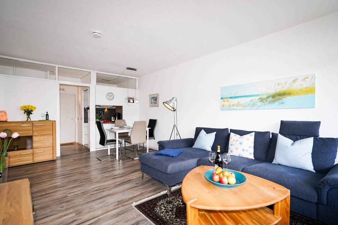 Meerblick-Apartment. Das gemütlich und modern eingerichtete und gepflegte Apartment kann mit dem Fahrstuhl bequem erreicht werden und bietet 4 Feriengästen Platz. Der helle Wohnraum ist mit einer bequemen Polsterlandschaft sowie einem ansprechenden Essbereich und hochwertigen Echtholzmöbeln eingerichtet. In der Einbauküche sind alle Geräte und Kochutensilien enthalten, um auch mal eigene Gerichte zuzubereiten. Der Kühlschrank beinhaltet ein kleines Gefrierfach. Das Elternschlafzimmer ist mit einem bequemen Boxspringbett (1,80 x 2,00) eingerichtet, Ein Etagenbett (je 0,90 x 1,90) befindet sich im Kinderschlafzimmer. Das geräumige Bad verfügt über eine Dusche. Ein großer Flachbildfernseher im Wohnzimmer zählt natürlich ebenso zur Einrichtung des Appartments. Der ca. 14 qm große Balkon verwöhnt mit einer Aussicht ins Grüne sowie einem Meerblick. Hunde sind in der Ferienwohnung stets gern gesehene Gäste (gegen Gebühr). Ein Schwimmbad liegt unmittelbar vor der Haustür und kann gegen ein geringes Entgelt genutzt werden. Wer jedoch ein Bad in der klaren Ostsee bevorzugt, findet den Strand in ca. 500 Metern Entfernung vor. LAGE Das Ferienappartment Nr. C-5/7 liegt im Panoramic Ferienpark in Sierksdorf. Neben dem nahegelegenen feinsandigen Ostseestrand bietet die Anlage viel Wohnkomfort und Annehmlichkeiten für Alleinreisende wie auch für Familien. Um die benötigten Utensilien für ein morgendliches Frühstück auf der Terrasse zu besorgen, genügt ein kurzer Spaziergang zum Kiosk des nahegelegenen Ferienparks. Weitere Einkaufsmöglichkeiten und Supermärkte liegen etwa 3 Kilometer entfernt. Für einen abwechslungsreichen Urlaub an der Ostsee sorgen die zahlreichen Attraktionen in der Umgebung. Ein Sportflugplatz mit Rundflugangebot, Schwimmbäder, Restaurants mit einem vielfältigen Angebot an fangfrischem Fisch sind nur einige Möglichkeiten, den Ostseeurlaub erlebnisreich zu gestalten. Nahegelegene Sport- und Freizeitmöglichkeiten bereichern die Ferientage auf vielfältige Weise. Ob Bowling, Tennis, Wandern, Segeln oder Rundflüge über die Lübecker-Bucht, der erlebnisreichen Gestaltung des Ostseeurlaubs sind kaum Grenzen gesetzt. Zu den größten Attraktionen gehört der Hansapark, ein familienorientierter Freizeitpark, der weit über die Grenzen der Region bekannt ist und nur wenige Gehminuten entfernt liegt. Zahlreiche Restaurants für den Hunger zwischendurch wie auch mit einem Angebot an regionalen Gerichten befinden sich an der nahegelegenen Strandpromenade [&] in der näheren Umgebung. Sierksdorf ist auch ein idealer Startpunkt um die Lübecker Bucht zu entdecken. So lassen sich beispielsweise viele Badeorte bequem von Sierksdorf aus erreichen.