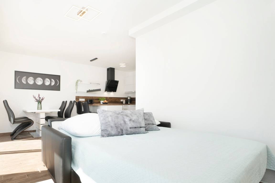 Wohnzimmer: 1 Schlafsofa (140x200 cm), TV, Verdunkelung: elektrische Rollläden