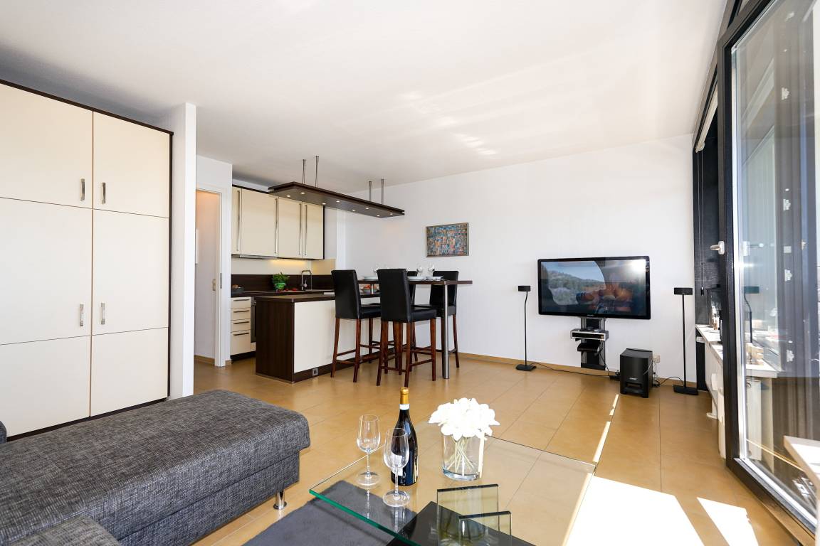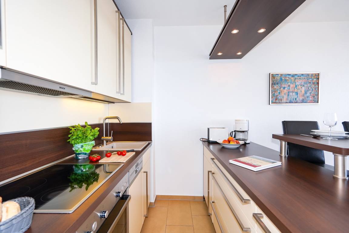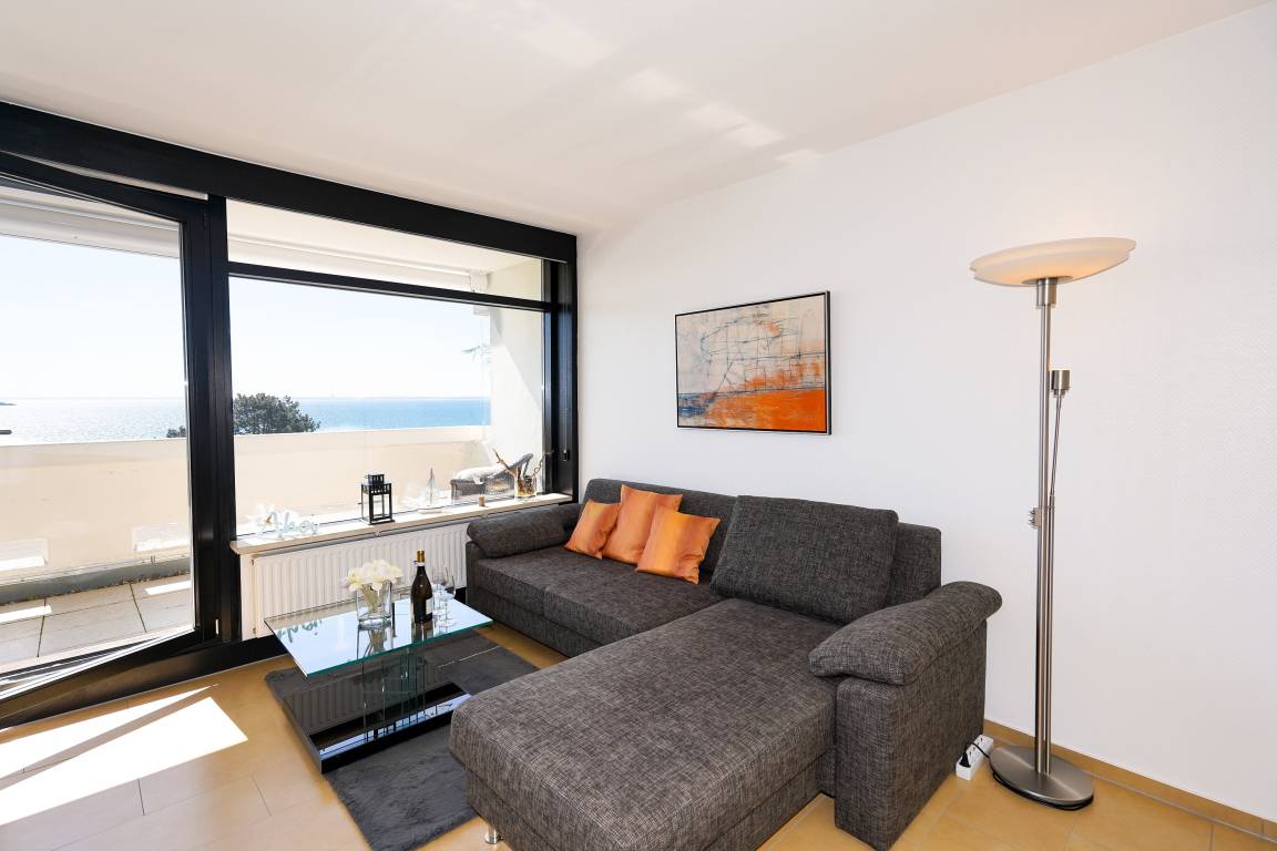 Die helle und gemütlich eingerichtete Ferienwohnung hat eine Größe von etwa 50 Quadratmetern. Das Highlight des Apartments ist der 8 Quadratmeter große Balkon, der eine Traumaussicht auf das Meer bietet. Zudem ist er mit wetterfesten Möbeln eingerichtet und einem Frühstück bei frischer Seeluft steht nichts entgegen. Die ruhig gelegene Wohnung hat 1 Schlafzimmer, welches mit Einzelbetten eingerichtet ist. Im Wohnraum befindet sich eine offene Küche, die alle Utensilien und Küchengeräte enthält, um auch mal eigene Gerichte zuzubereiten. Diese können im gemütlichen Tresen serviert werden. Relaxed dürfen von der bequemen Couch aus aktuelle Movies auf dem großen Flachbildfernseher geschaut werden. Die hochwertige Ausstattung des Badezimmers enthält eine frei zugängliche Dusche. WLAN ist enthalten. Hunde sind in der Wohnung willkommen (gegen Gebühr). Die nähere Umgebung bietet reichlich Auslauf für die Vierbeiner und daher beste Bedingungen für einen Urlaub mit Hund. Für das Auto steht ein Außenstellplatz bereit. Da Rauchen in der Ferienwohnung nicht erwünscht ist, wird gebeten, Zigaretten nur auf dem Balkon mit Traumblick auf die Ostsee zu rauchen. LAGE Die im Ferienpark Sierksdorf liegende Wohnung befindet sich direkt am Strand. Auf dem Weg bis zum 200 Meter entfernten Ostseestrand muss keine störende Straße überquert werden. Der Urlaub mit Hund wird ebenfalls zu einem Erlebnis am nahegelegenen Hundestrand. Dort dürfen sich die Vierbeiner ohne Leinenzwang austoben. Um die benötigten Utensilien für ein morgendliches Frühstück auf dem Balkon zu besorgen, genügt ein kurzer Spaziergang zum Kiosk des Ferienparks. Weitere Einkaufsmöglichkeiten und Supermärkte liegen etwa 3 Kilometer entfernt. Für einen abwechslungsreichen Urlaub an der Ostsee sorgen die zahlreichen Attraktionen in der Umgebung. Ein Sportflugplatz mit Rundflugangebot, Schwimmbäder, Restaurants mit einem vielfältigen Angebot an fangfrischem Fisch sind nur einige Möglichkeiten, den Ostseeurlaub erlebnisreich zu gestalten. Nahegelegene Sport- und Freizeitmöglichkeiten bereichern die Ferientage auf vielfältige Weise. Ob Bowling, Tennis, Wandern, Segeln oder Rundflüge über die Lübecker-Bucht, der erlebnisreichen Gestaltung des Ostseeurlaubs sind kaum Grenzen gesetzt. Zu den größten Attraktionen gehört der HansaPark, ein familienorientierter Freizeitpark, der weit über die Grenzen der Region bekannt ist und nur wenige Gehminuten entfernt liegt. Sierksdorf ist auch ein idealer Startpunkt um die Lübecker Bucht zu entdecken. So lassen sich beispielsweise viele Badeorte bequem von Sierksdorf aus erreichen.
