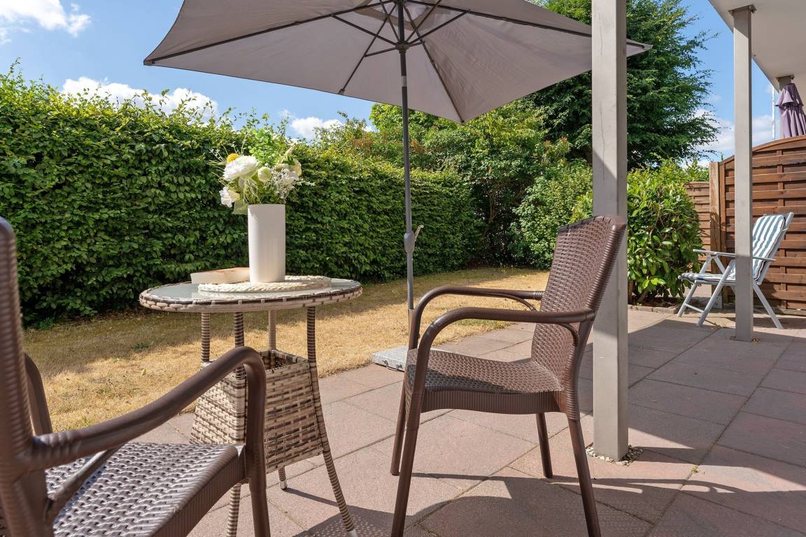 Ein PKW-Außenstellplatz ist für Sie direkt am Haus reserviert. Ein abschließbares, gemeinschaftlich genutztes Gartenhaus steht als Fahrradunterstand zur Verfügung.
