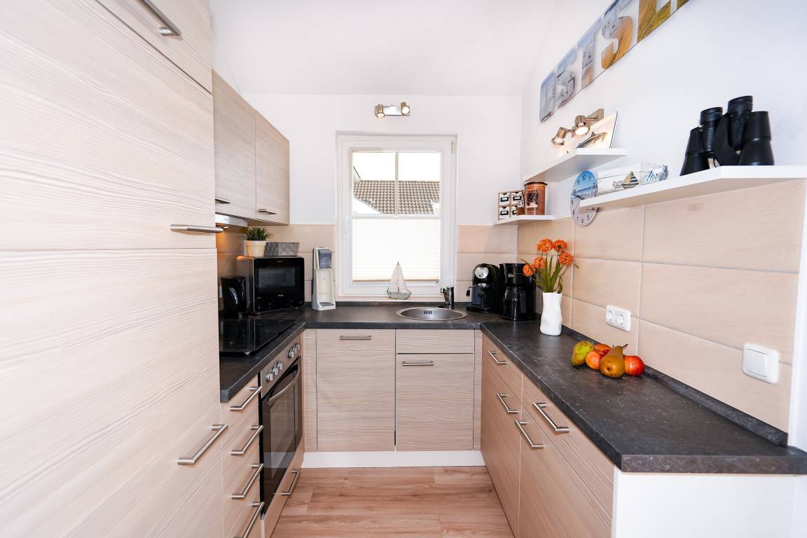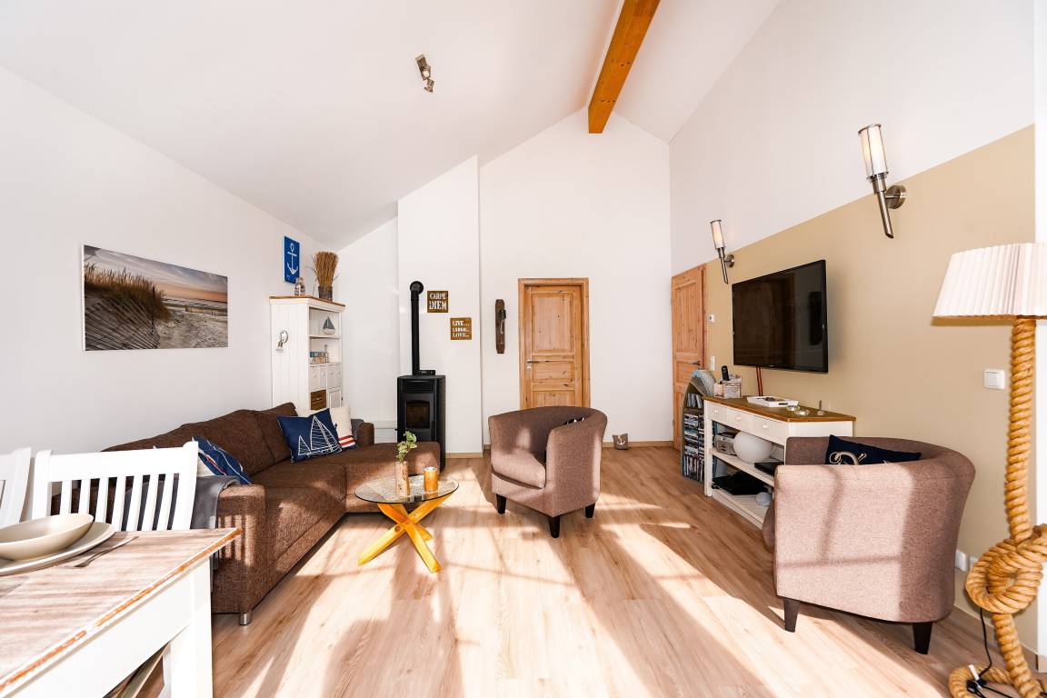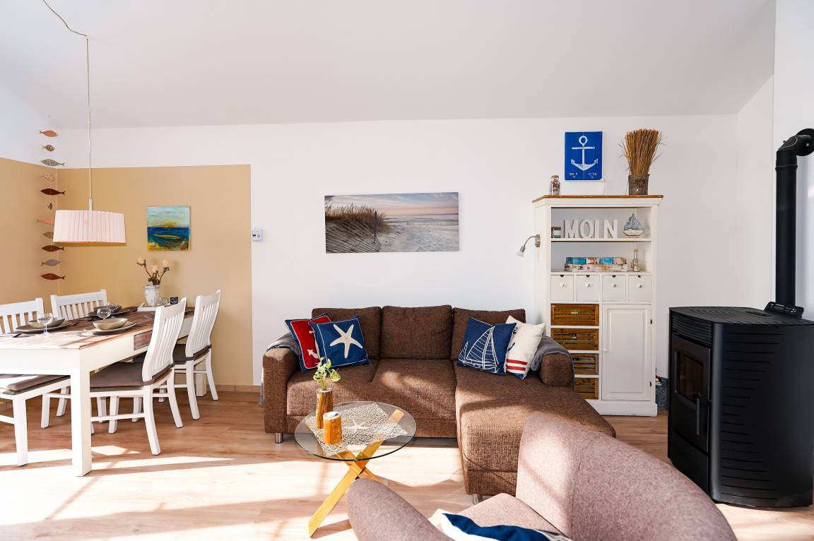 Das liebevoll eingerichtete Haus verfügt über drei Zimmer, darunter zwei gemütliche Schlafzimmer, die zu erholsamen Nächten einladen. Der offene Wohn- und Essbereich mit bequemer Sitzecke, Kaminofen und Fußbodenheizung sorgt für eine warme, entspannte Atmosphäre – perfekt, um nach einem Strandspaziergang den Tag ausklingen zu lassen. Die voll ausgestattete Küche mit Spülmaschine, Backofen, Kühlschrank, Kaffeemaschine und Wasserkocher lässt keine Wünsche offen und macht gemeinsames Kochen zum Vergnügen. Ein echtes Highlight ist das Wellness-Bad: Genießen Sie pure Entspannung in der Whirlpool-Badewanne oder in der privaten Sauna – ein Luxus, den Sie ganz für sich allein haben. So wird jeder Urlaubstag zu einem kleinen Spa-Erlebnis.