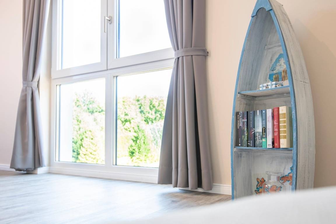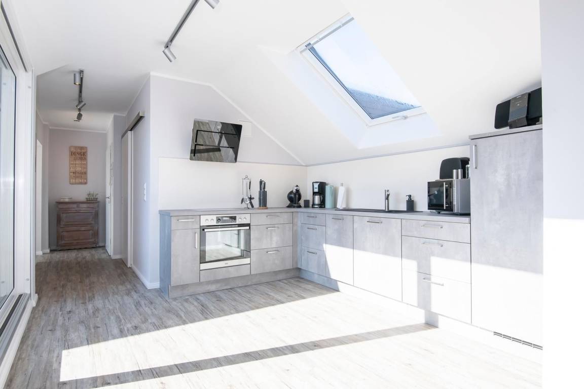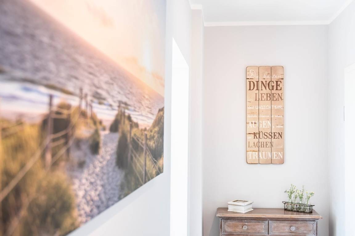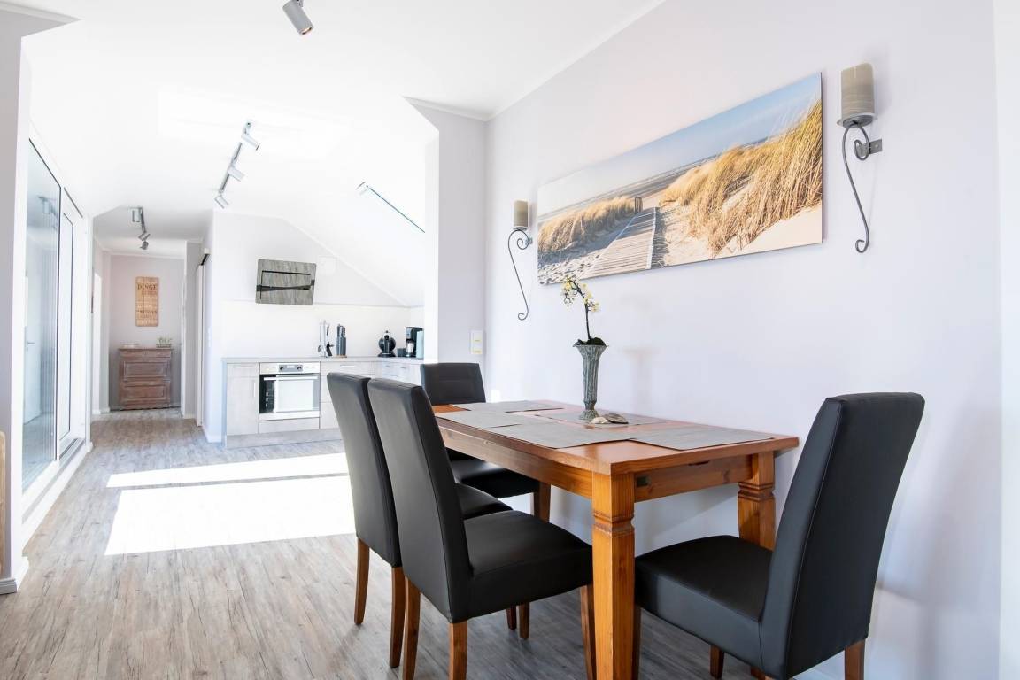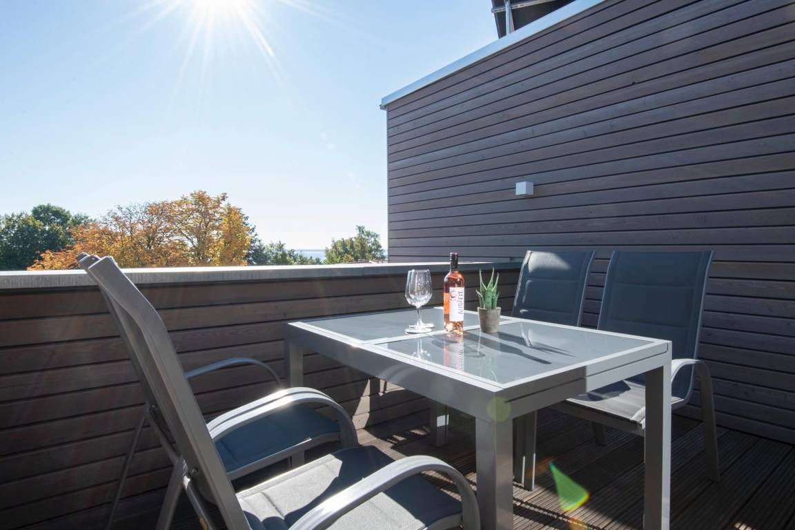 Durch einen ausgefeilten Grundriss ist die Wohnung lichtdurchflutet und überzeugt mit einem Blick auf die Ostsee. Der Eingangsbereich führt direkt in die offene, moderne, voll ausgestattete Küche über, die vis à vis zur Loggia mit Meerblick liegt. Bereiten Sie sich schmackhafte Köstlichkeiten zu und genießen Sie diese direkt auf Ihrem möblierten Balkon, begleitet vom Rauschen des Meeres und Rufen der Möwen. Sollte das Wetter es einmal nicht zulassen, unter freiem Himmel zu essen, steht im Wohnbereich ein Esstisch mit Platz für Vier bereit. Zu spannenden Kinoabenden vor dem Flachbild-TV oder geselligen Spieleabenden lädt Sie im Wohnbereich ein gemütliches Ecksofa zum Kuscheln ein. Loggen Sie sich im kostenlosen WLAN-Netzwerk ein und bleiben Sie auch im Urlaub erreichbar. Im Hauptschlafzimmer mit Flat-TV wartet ein komfortables Boxspringbett (2x 90x200 cm, durchgehender Topper) für erholsame Nächte auf Sie. Dank Verdunkelungsgardinen mit Wärmeschutz kann man hier auch im Sommer angenehm schlafen. Im zweiten separaten Schlafzimmer können sich 2 weitere Urlaubsgäste ebenfalls in die Kissen eines Boxspringbettes (2x 90x200 cm, durchgehender Topper) fallen lassen. Alle Räume, bis auf das kleine Schlafzimmer, lassen sich durch elektrische Außenjalousien verdunkeln. Neue Energie tanken Sie nach einer erfrischenden Dusche im hochwertigen Badezimmer mit Handtuchheizung, Waschmaschine und Föhn. Für angenehme Wärme sorgt eine Fußbodenheizung in der ganzen Wohnung.