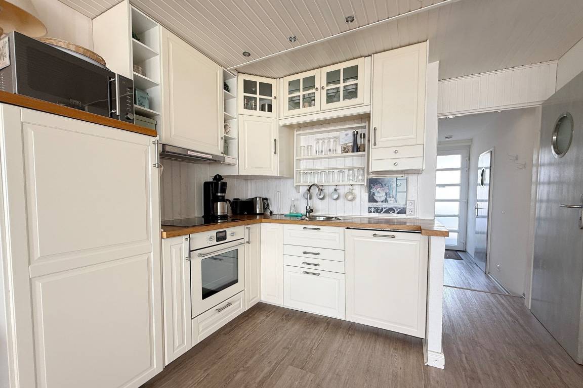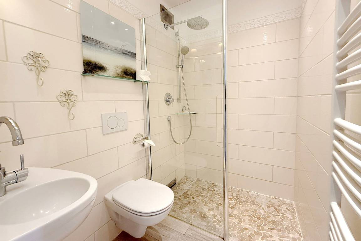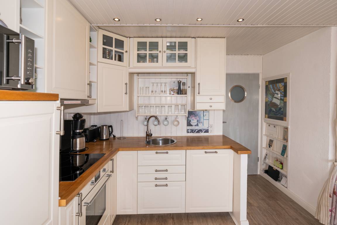 Verbringen Sie erholsame Tage in unserer 50 qm großen Ferienwohnung Aurelia's Meerblick. Neben der Wohnfläche kommt noch die ca. 14 qm große, teil überdachte Loggia hinzu. Die Wohnung ist im amerikanischen Landhausstil eingerichtet - besonders gemütlich ist der elektrische Kaminofen, der in die Wandpaneele eingesetzt wurde. Die Fußböden sind pflegeleicht mit Vinyl-Designböden ausgestattet, im Bad haben wir Fliesen legen lassen. In der Unterkunft finden bis zu 4 Personen Platz zum Entspannen, die Mitnahme Ihres kleinen Hundes ist möglich (gegen Gebühr). Aurelia's Meerblick bietet Ihnen W-LAN Internet, einen Festnetzanschluss mit Deutschland-Flatrate sowie ein TV mit Internetanschluss und eine Soundbar mit Radio und Bluetooth. Die Küche verfügt über einen Geschirrspüler, des Weiteren befindet sich im Haus auch eine Waschmaschine und ein Trockner (mit Münzsystem). Wenn Sie Bettwäsche, Kinderbetten, Hochstühle, Fahrräder oder die Nutzung des Fahrradkellers mieten möchten, steht Ihnen unser Verwalter zur Seite. Auch Strandkörbe können Sie über unseren Verwalter mieten. Direkt vor der Eingangstür finden Sie den zur Wohnung gehörenden Stellplatz für Ihr Auto. Insgesamt bietet Ihnen die Wohnung zwei Schlafbereiche. Die geschlossene kuschelige Hansapark Koje ist mit einem Funktionsbett, wahlweise in 80x200 cm oder 160 x 200 cm nutzbar, eingerichtet. Ein Flachbild-TV und eine Kommode ergänzen den Raum. Die elegante Kapitänskoje mit seinem maritimen Bleiglas-Segler ist an das Wohnzimmer angeschlossen. Auf eine Wand zum Wohnzimmer wurde bewusst verzichtet, damit Sie morgens nach dem Aufwachen im 160 x 200 cm großen Boxspringbett den Blick auf das Meer genießen können. Tagsüber kann der Bereich durch den geschmackvollen Vorhang abgetrennt werden. Für Ihre Bekleidung und Gepäck gibt es ein kleines Ankleidezimmer. In dem großen Schrank finden Sie reichlich Platz und Stauraum. Außerdem sind dort auch Wäscheständer und Garderobe untergebracht. Herzstück der Wohnung ist das gemütliche Wohnzimmer mit Meerblick und Wohlfühlambiente. In der Küchenecke im Landhausstil bleiben keine Wünsche offen - Geschirrspülmaschine, Ceranfeld und Backofen, Mikrowelle, Dunstabzug, ein großer Kühlschrank mit Gefrierfach, Kaffeemaschine, Toaster und Wasserkocher sowie Geschirr für 4-6 Personen ist vorhanden. Die Essecke ist mit einer bequemen Eckbank und einem Stuhl ausgestattet. Gegenüberliegend befindet sich die Wohnzimmerecke mit der amerikanischen Beadbord-Paneele und eingesetztem, elektrischen Kaminofen, darüber der LED-TV. Drum herum platziert können Sie auf dem Dreierkuschelsofa und dem Sessel Platz nehmen, 2 Hocker ermöglichen das entspannte Füße-hochlegen. Das Bad mit seinem Strandambiente ist unsere kleine Wellnessoase. Die geflieste bodengleiche Dusche begeistert nicht nur durch sein Aussehen, sondern auch mit der zusätzlichen großen Regendusche. Das heiße Wasser ist übrigens superschnell da! Auf der hellen Loggia möchte man eigentlich den ganzen Tag verweilen, auch hier herrschen warme helle Töne vor. Es gibt einen großen, runden Esstisch mit 4 bequemen Korbstühlen und eine elegante Rollliege mit Auflage. Eine schöne Markise bietet an heißen Sommertagen Schutz, denn vom frühen Morgen bis zum Nachmittag ist mit Blick aufs Meer, meist windgeschütztes, Sonnenbaden möglich. LAGE Die im Ferienpark Sierksdorf liegende Wohnung befindet sich direkt am Strand. Auf dem Weg bis zum 200 Meter entfernten Ostseestrand muss keine störende Straße überquert werden. Der Urlaub mit Hund wird ebenfalls zu einem Erlebnis am nahegelegenen Hundestrand. Dort dürfen sich die Vierbeiner ohne Leinenzwang austoben. Um die benötigten Utensilien für ein morgendliches Frühstück auf dem Balkon zu besorgen, genügt ein kurzer Spaziergang zum Kiosk des Ferienparks. Weitere Einkaufsmöglichkeiten und Supermärkte liegen etwa 3 Kilometer entfernt. Für einen abwechslungsreichen Urlaub an der Ostsee sorgen die zahlreichen Attraktionen in der Umgebung. Ein Sportflugplatz mit Rundflugangebot, Schwimmbäder, Restaurants mit einem vielfältigen Angebot an fangfrischem Fisch sind nur einige Möglichkeiten, den Ostseeurlaub erlebnisreich zu gestalten. Nahegelegene Sport- und Freizeitmöglichkeiten bereichern die Ferientage auf vielfältige Weise. Ob Bowling, Tennis, Wandern, Segeln oder Rundflüge über die Lübecker-Bucht, der erlebnisreichen Gestaltung des Ostseeurlaubs sind kaum Grenzen gesetzt. Zu den größten Attraktionen gehört der HansaPark, ein familienorientierter Freizeitpark, der weit über die Grenzen der Region bekannt ist und nur wenige Gehminuten entfernt liegt. Sierksdorf ist auch ein idealer Startpunkt um die Lübecker Bucht zu entdecken. So lassen sich beispielsweise viele Badeorte bequem von Sierksdorf aus erreichen.
