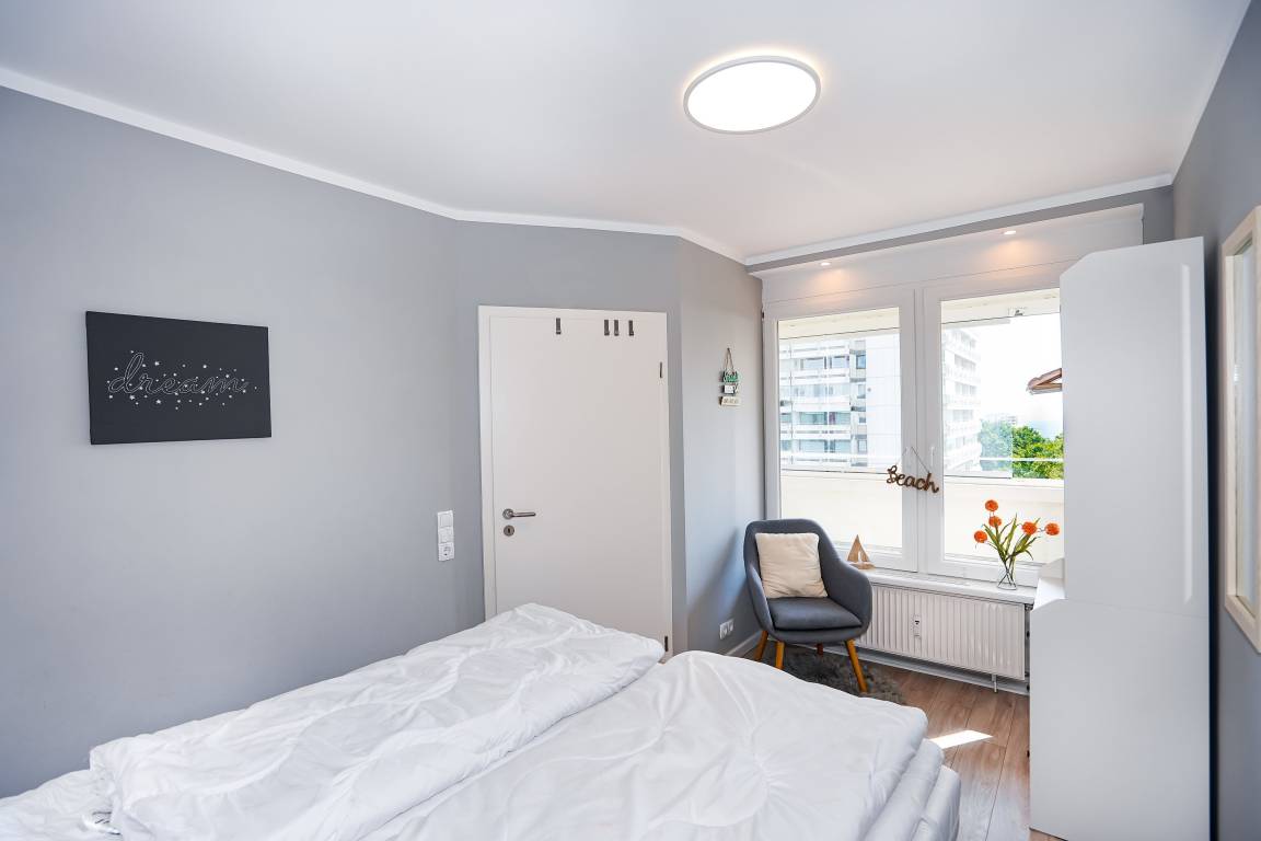 Die mit einem Fahrstuhl erreichbare Ferienwohnung Dünenlicht befindet sich in der 5. Etage der Panoramic Ferienanlage Sierksdorf. Das gepflegte und ruhig gelegene Apartment hat eine Größe von etwa 40 Quadratmetern und bietet bis zu 4 Urlaubsgästen Platz. Der Wohnraum verfügt über einen Essbereich sowie über eine bequeme Polsterlandschaft, von der aus die Lieblingsserie auf einem großen Flachbildfernseher verfolgt werden. Das helle Schlafzimmer ist mit einem bequemen Doppelbett (2 x 80 x200) ausgestattet. Die moderne Küche gibt Gelegenheit, eigene Mahlzeiten zuzubereiten. Das Badezimmer ist mit einer Dusche ausgestattet. Der mit wetterfesten Gartenmöbeln versehene Balkon bietet neben der Möglichkeit im Freien zu Frühstücken auch eine Aussicht auf die Lübecker Bucht. Eine Balkonverglasung lädt auch im Winter zum verweilen auf dem Balkon ein. Haustiere sind in dieser Ferienwohnung leider nicht gestattet. Während des Aufenthalts steht eine Schwimmhalle im Nebengebäude gegen ein geringes Entgelt zur Verfügung. Als Bonus zu der Zigarettenpause dürfen Raucher die traumhafte Aussicht vom Balkon aus genießen, denn Rauchen ist in der Wohnung nicht erwünscht.