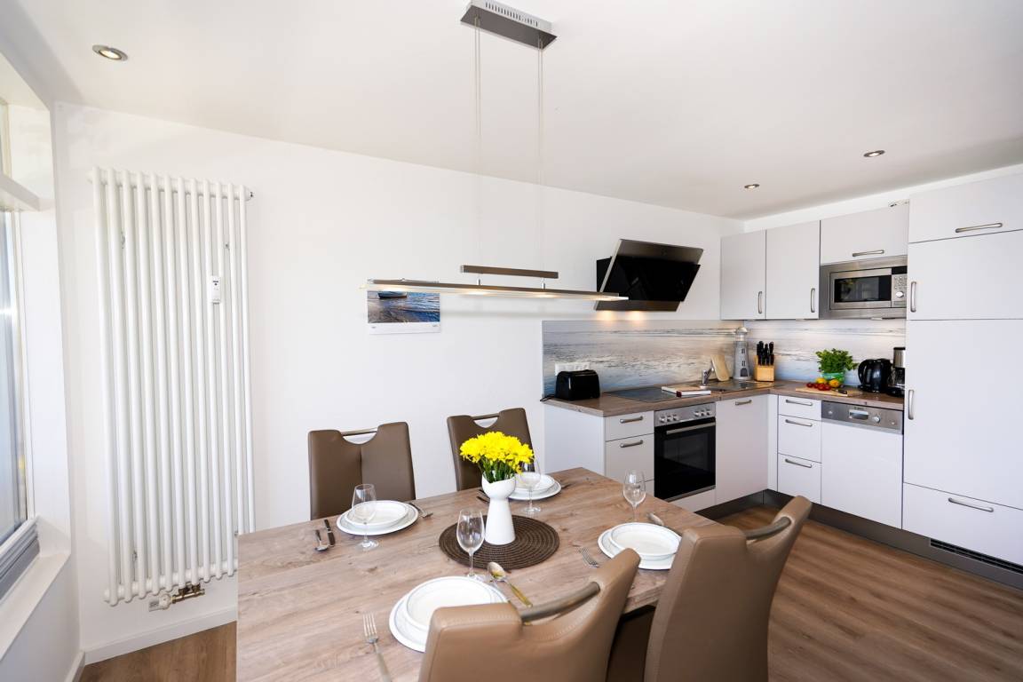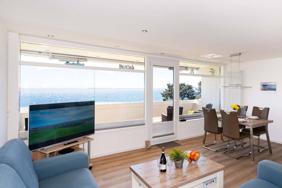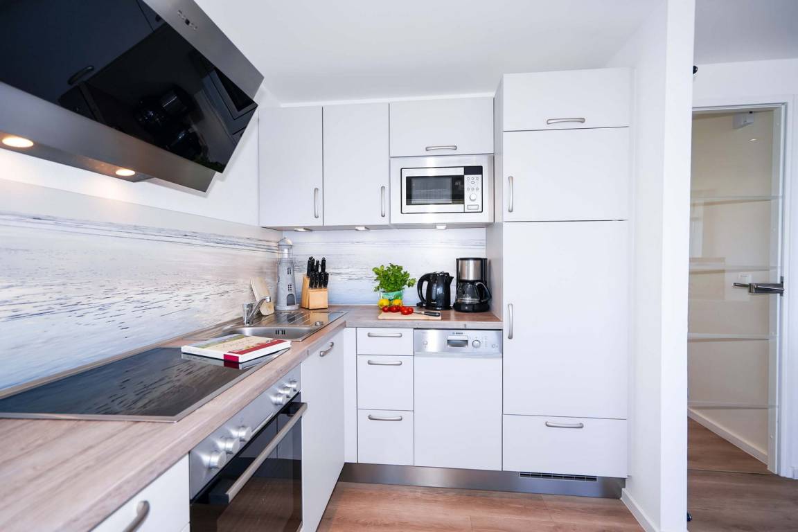 Die im Ferienpark Sierksdorf gelegene Ferienwohnung bietet mit einer Wohnfläche von 50 Quadratmetern Platz für 2 bis 4 Feriengäste. Das kürzlich renovierte Ferienapartment hat eine Wohnfläche von etwa 50 Quadratmetern. Von dem mit wetterfesten Möbeln eingerichteten Balkon und vom Wohnzimmer aus gewährt Ihnen die Wohnung einen Traumblick auf die Ostsee. Die komplett ausgestattete Küche enthält alle Geräte und Kochutensilien, um auch mal eigene Gerichte zuzubereiten. Diese können im ansprechenden Essbereich des Wohnraums serviert werden. Ein großer Flachbildfernseher gehört ebenfalls zur Wohnungseinrichtung. Das Badezimmer ist mit einer frei zugänglichen Dusche ausgestattet. Ein komfortables Doppelbett befindet sich im Schlafzimmer der Ferienwohnung, im zweiten Schlafzimmer befindet sich ein Etagenbett. Hunde sind in der Wohnung herzlich willkommen (gegen Gebühr). Die nähere Umgebung bietet reichlich Auslauf für die Vierbeiner und daher beste Bedingungen für einen Urlaub mit Hund. Für das Auto steht ein Außenstellplatz bereit. Da Rauchen in der Ferienwohnung nicht erwünscht ist, wird gebeten, Zigaretten nur auf der Terrasse mit Traumblick auf die Ostsee zu rauchen.