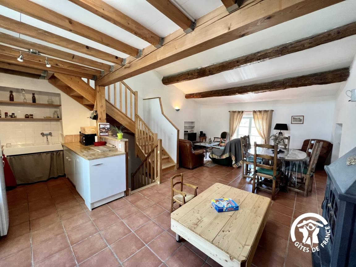 Ferienhaus auf 3 Ebenen: auf der unteren Ebene, 2 Zimmer, 2 Betten 140 2 pers. 1 SDE, WC unabhängige, kleine Terrasse. Erdgeschoss: Wohnküche mit Kamin einfügen, Balkon und Garten mit Gartenmöbeln. Im Obergeschoss Zwischengeschoss mit 2 Betten 90 1 und klappbare Kinderbett. Bettwäsche und Handtücher werden nicht gestellt. Klimaanlage im Wohnzimmer. Kurtaxe: 0.50€/J/pers. Trail Wandern und Beobachtung zu Beginn des Hauses bis zur Halbinsel. Angeln möglich.