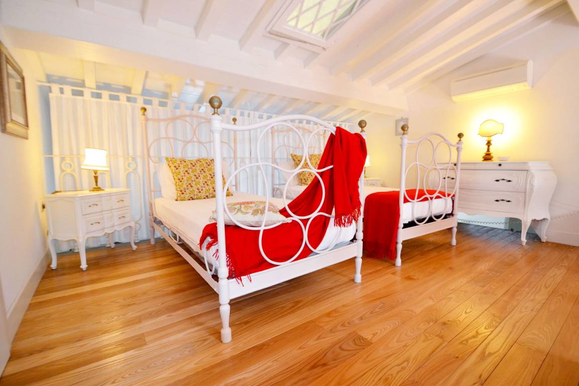 Schlafzimmer mit Bad 2: Doppelbett, zwei Einzelbetten, WiFi Internet, Klimaanlage, Fliegengitter, Waschbecken, WC, Bidet, Badewanne, Dusche.