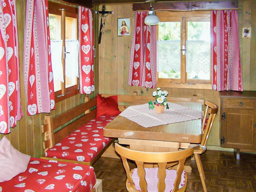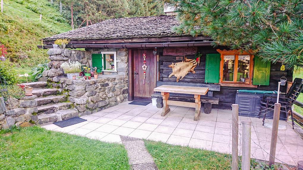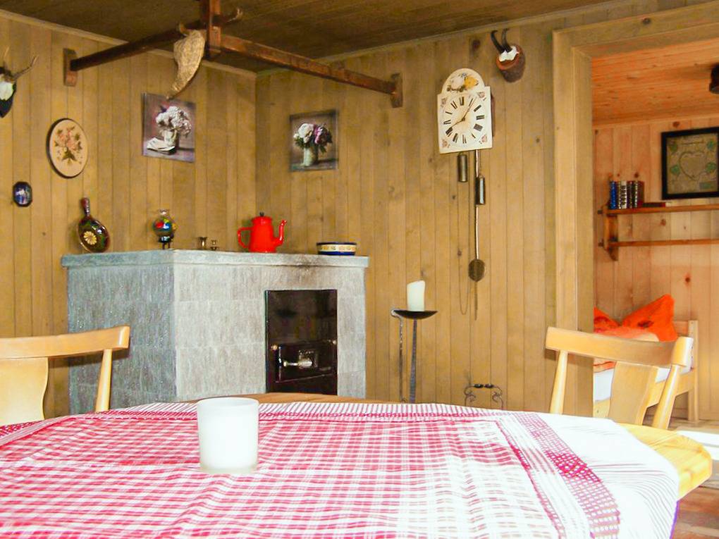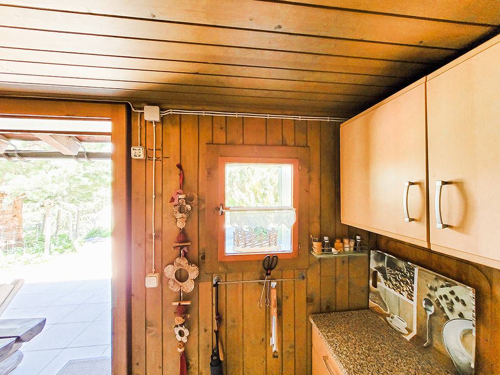 Haus: Urige Almhütte in wildromantischer Umgebung. Rustikale gemütliche Einrichtung. Heizung durch Kaminofen, Tiefparterre durch Gasofen. Warmwasser über Durchlauferhitzer. Terrasse mit Sitzmöbeln. Grillplatz mit Außengrill, Sitzecke. 2 Pkw-Stellplätze am Haus.