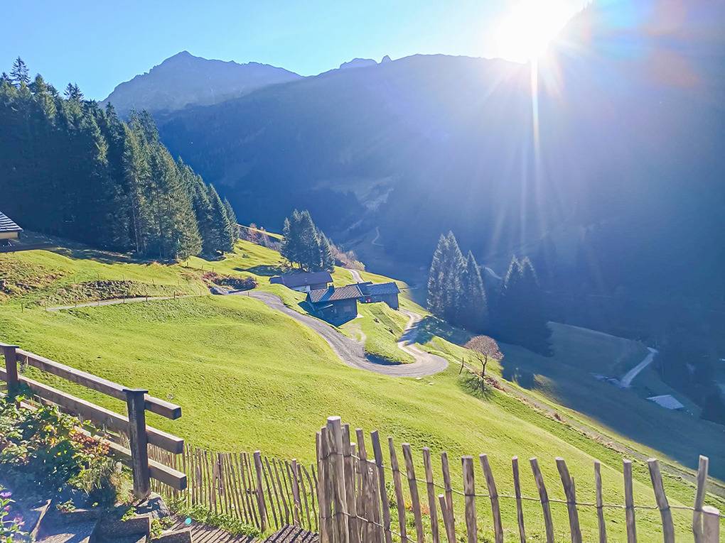 Ort: Silbertal. Idyllische Lage in unberührter Natur im hinteren Silbertal. Ruhige, sonnige Hanglage inmitten von Almwiesen mit herrlichem Talblick. Schöne Wander- und Mountainbike-Routen u.a. bis ins Klostertal und zum Arlberg. Pkw-Zufahrt bis zum Haus. Ortsmitte 6 km. Schruns 12 km.
