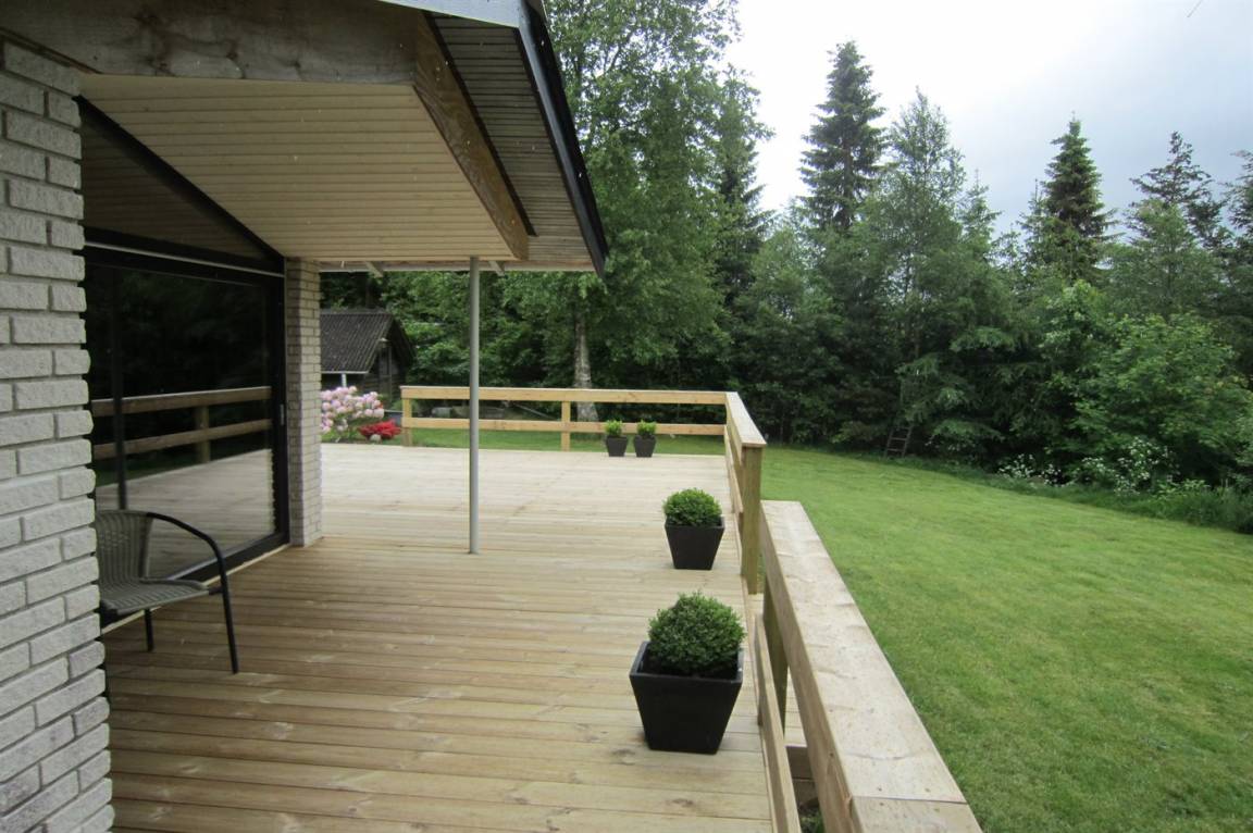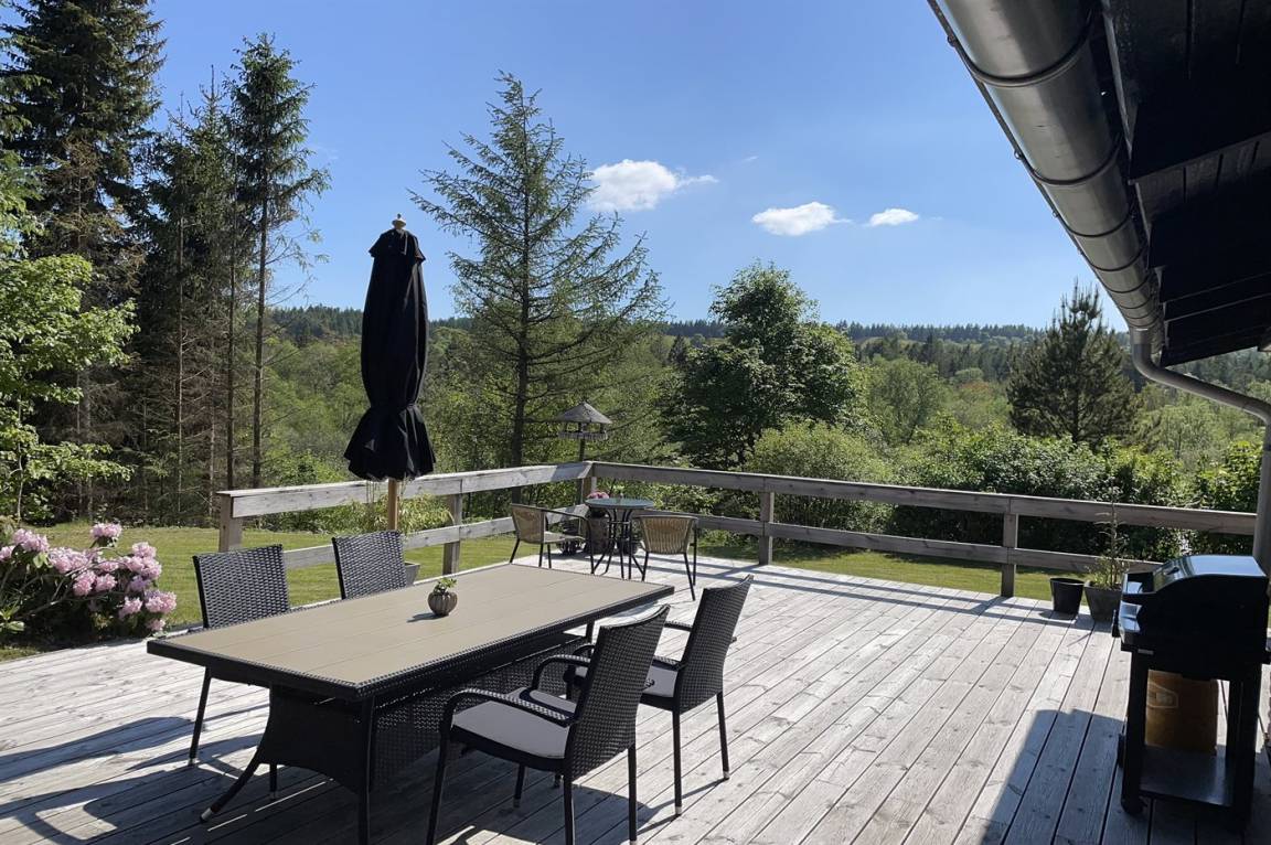 Dieses schöne Ferienhaus liegt auf einem abgeschirmten, leicht schrägenden Grundstück mit Aussicht auf die naturschöne Umgebung. Das Haus liegt in einer Sackgasse in einem ruhigen Ferienhausgebiet - nicht weit von einem See entfernt.
