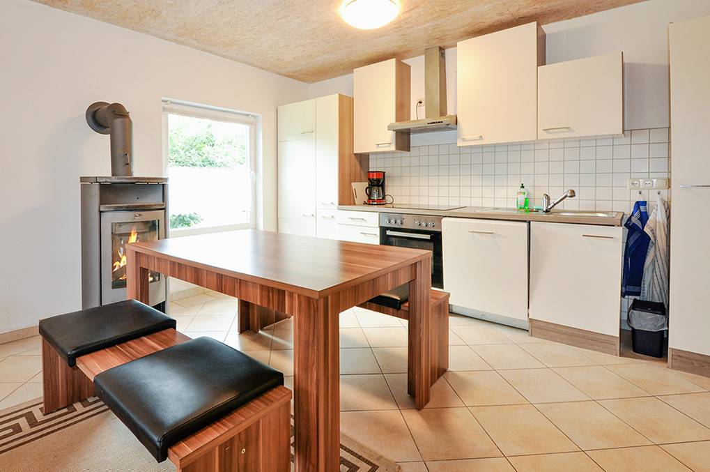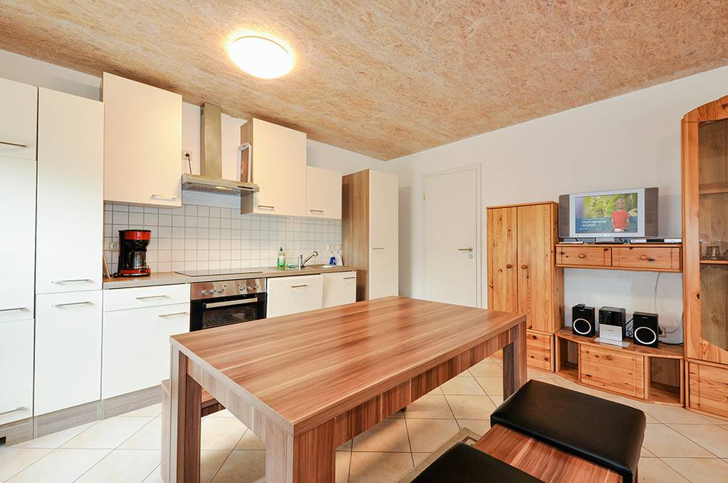 D 49.212 Ferienhaus 1-4 Pers.: 3-Zimmerhaus mit ca. 60 qm Wohnfläche, Parterre. Wohnraum mit Leder-Sitzgruppe, Couchtisch, Kaminofen, Sat-TV, Radio/CD, Esstisch, Einbauküche (Backofen, Mikrowelle, Spülmaschine). Zwei Doppelzimmer. Bad: bodengleiche Du, Wb, WC.